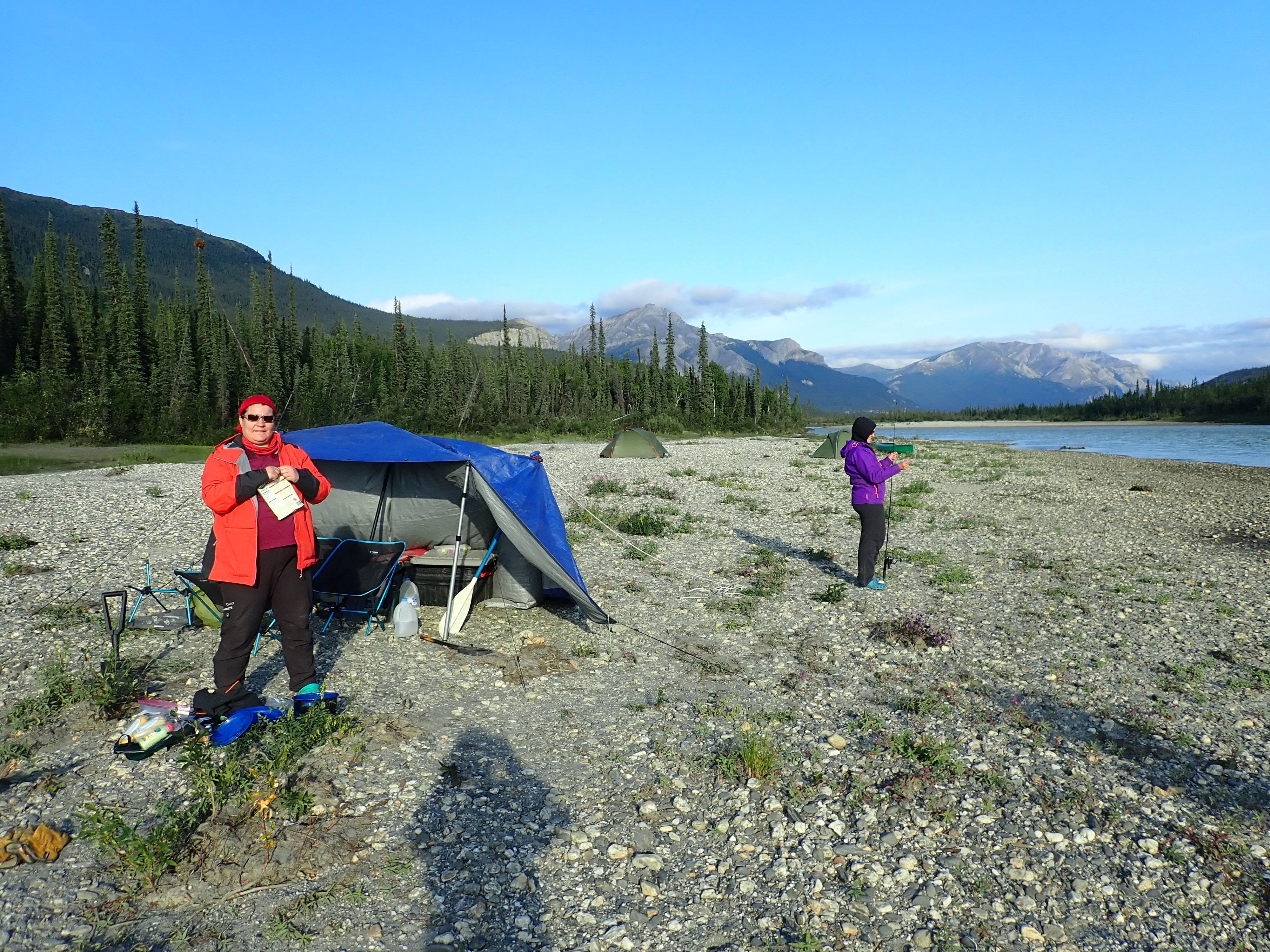 As paddling with this weather conditions would be quite challenging (and we do not know the river) we decide to stay for another day in our first camp.