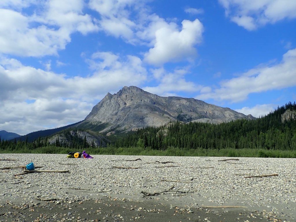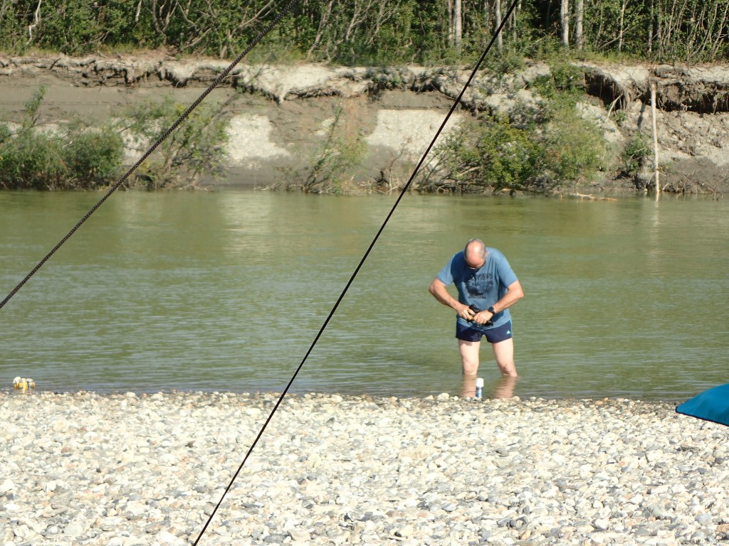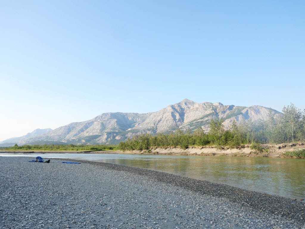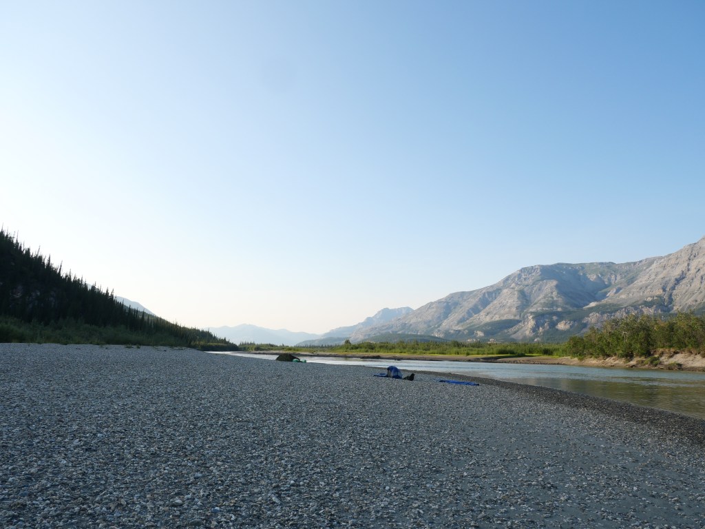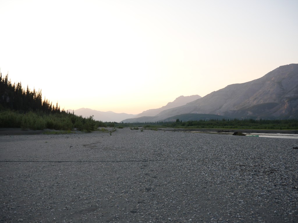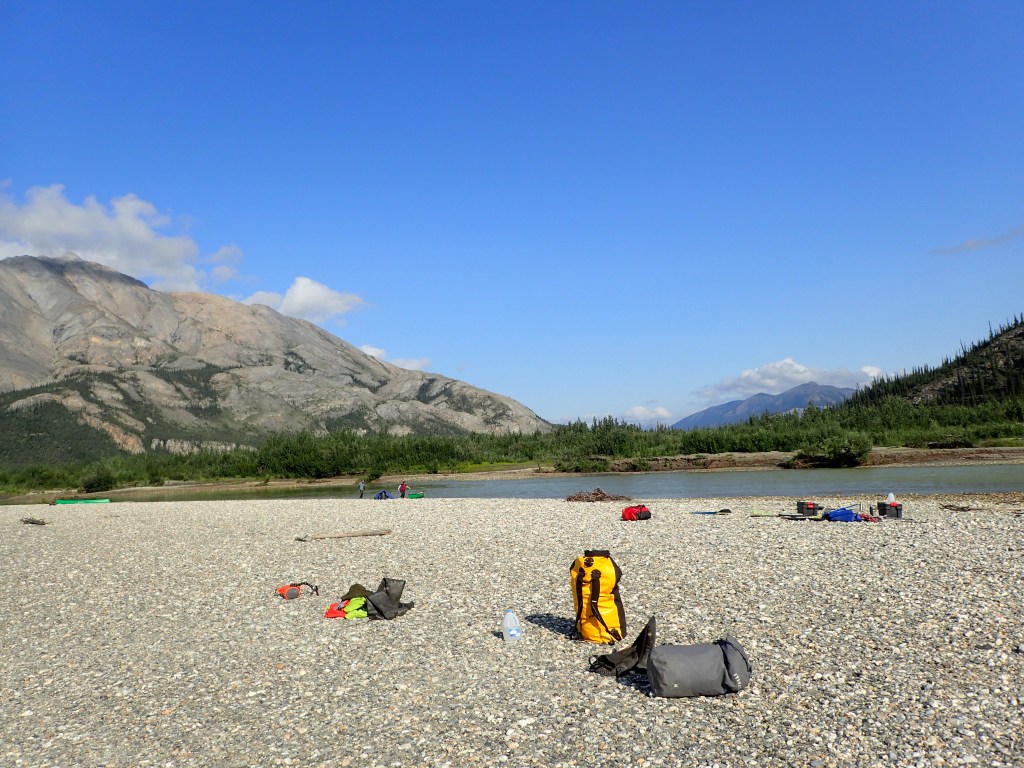 We arrive at the gravel bank from which it is possible to reach Takahula Lake in the beginning of the afternoon.