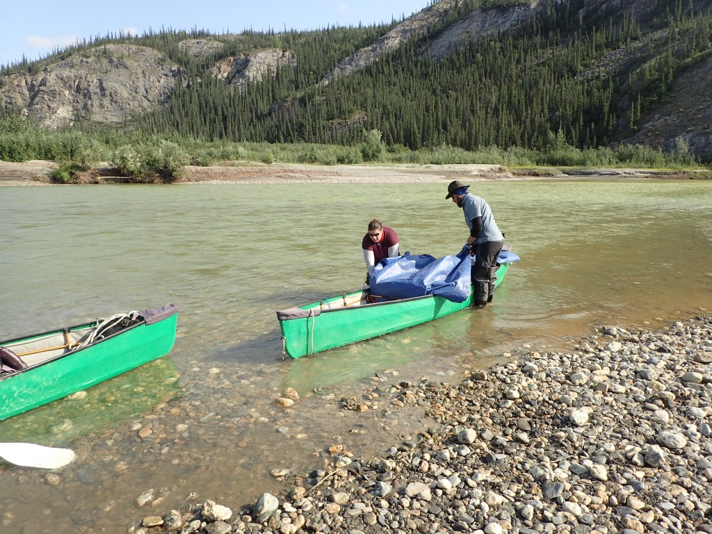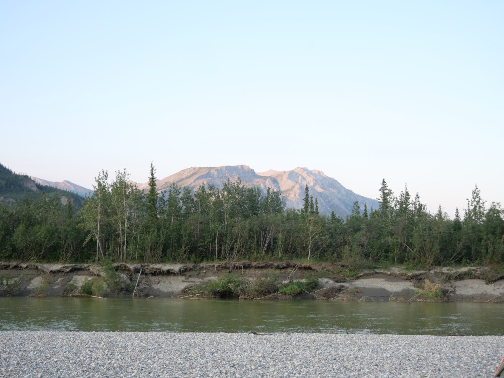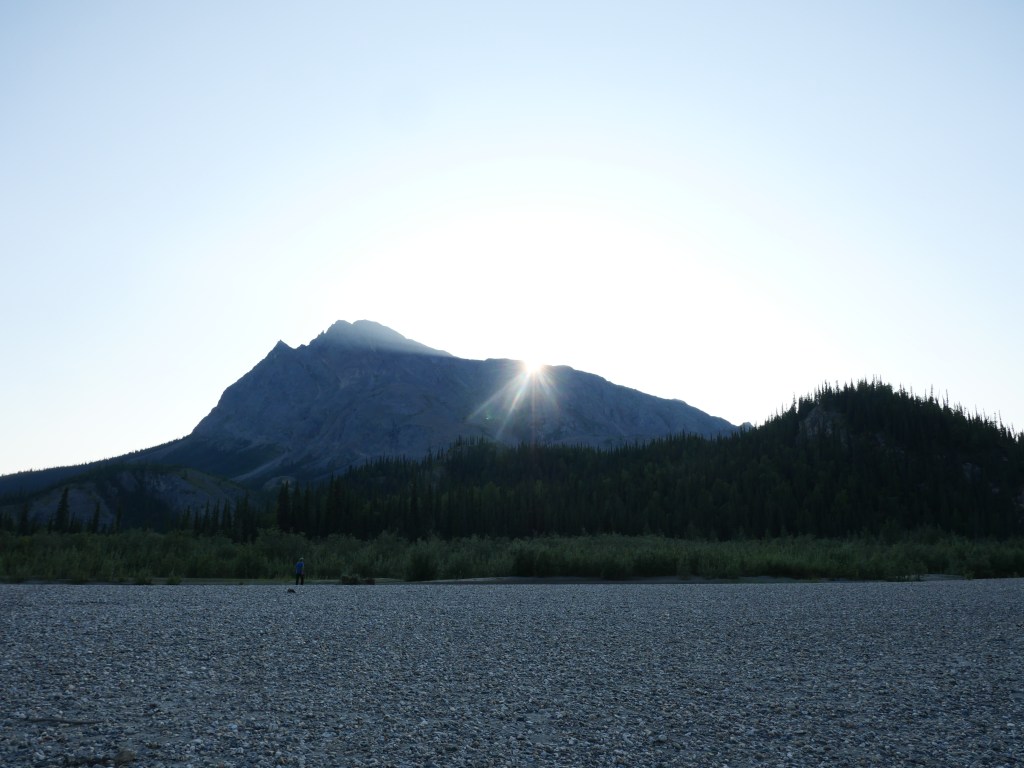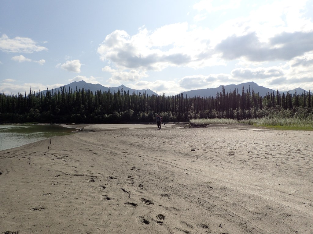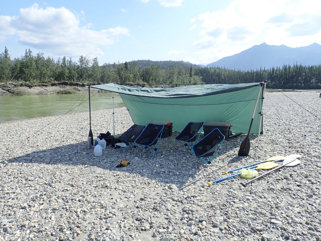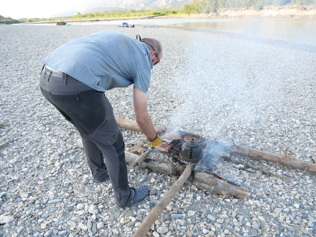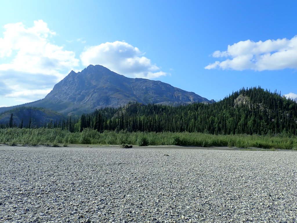 We arrive at the gravel bank from which it is possible to reach Takahula Lake in the beginning of the afternoon.