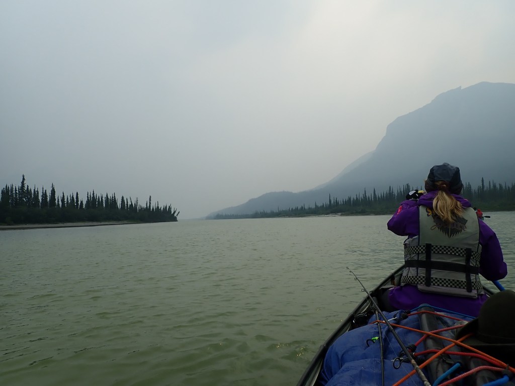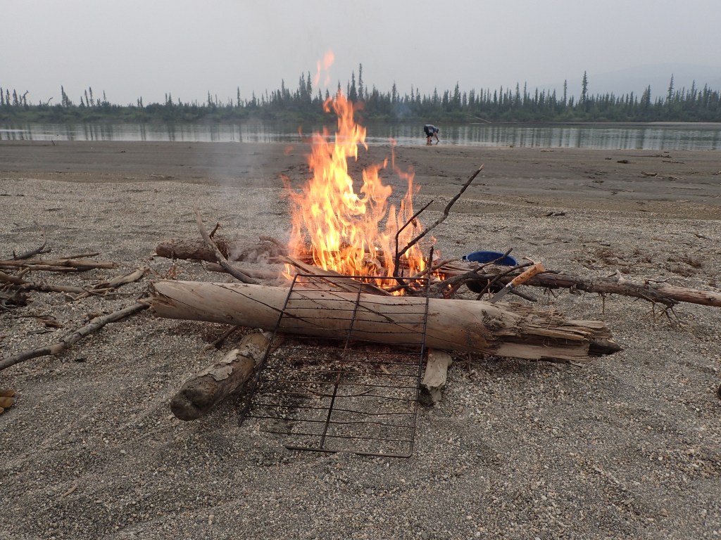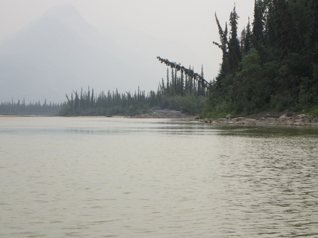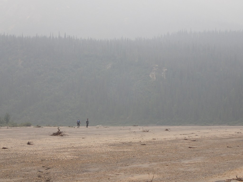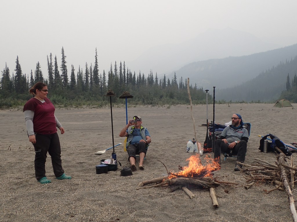 In addition, there are not a lot of “good camps”. We navigate about 3 hours after lunch before we finally settle for a quite “sandy” bank. Fortunatley, there are some portions with a little bit of gravel to set up our tents even if we are farer away from the river than usual. The smoke is still there and even get’s thicker and thicker. Mystic.