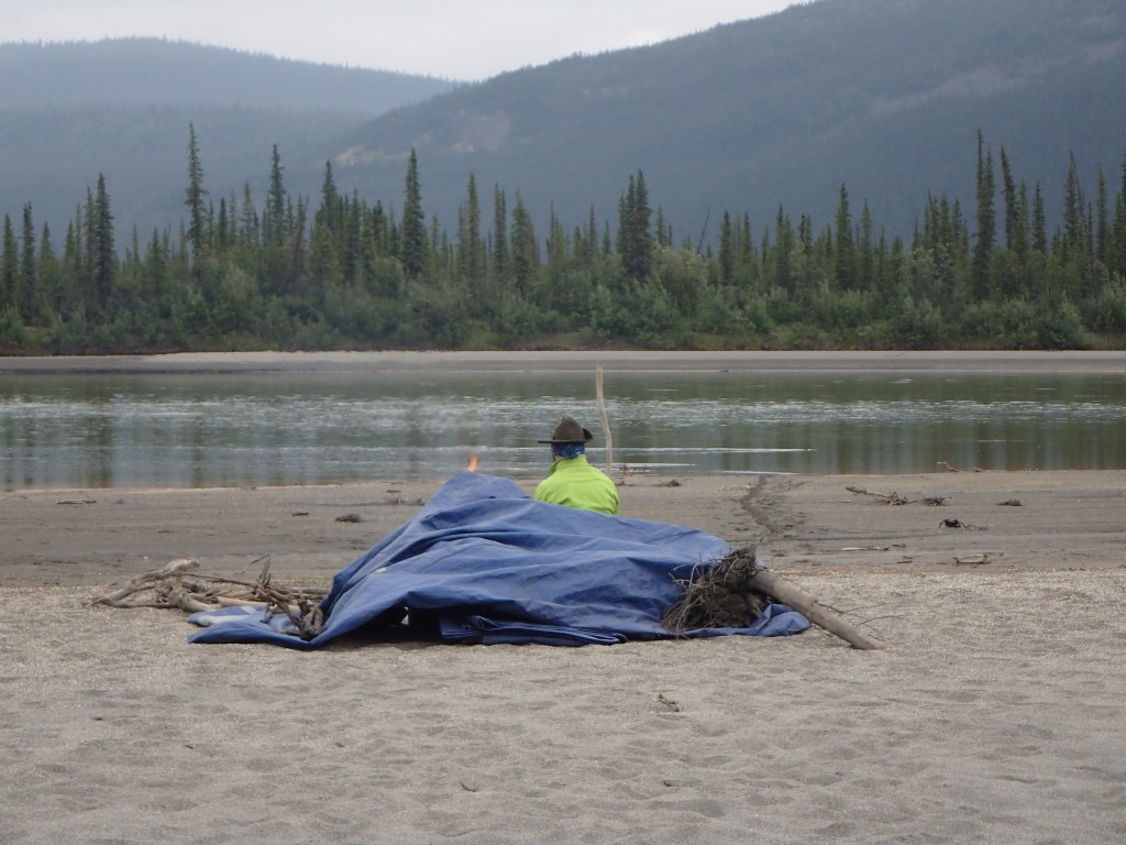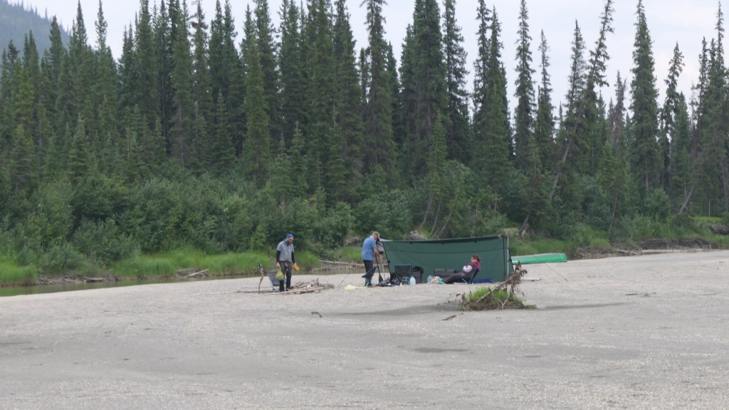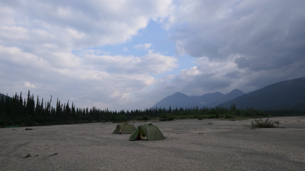 We have a late start after the long paddling day yesterday. We are up at about 8 am – the smoke is gone but the weather is not really good.