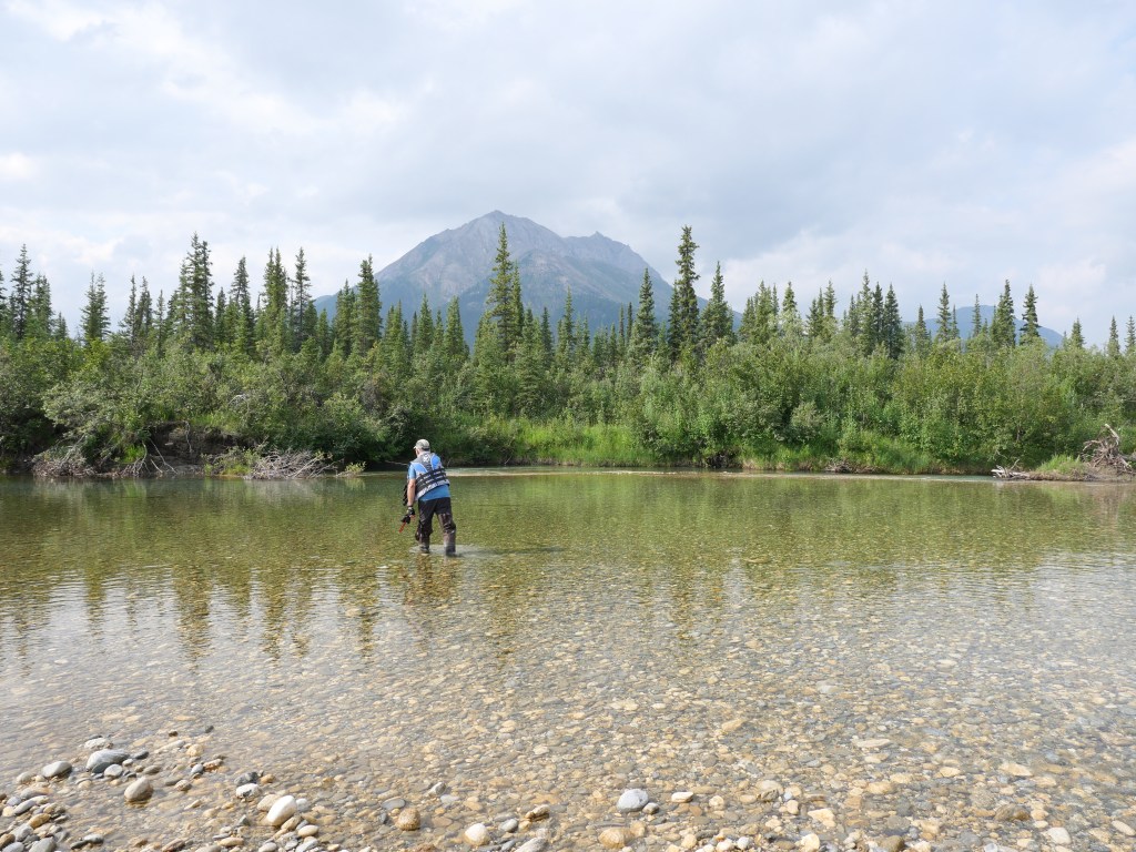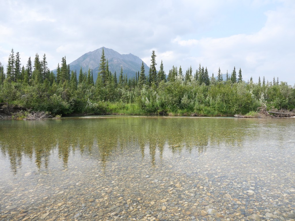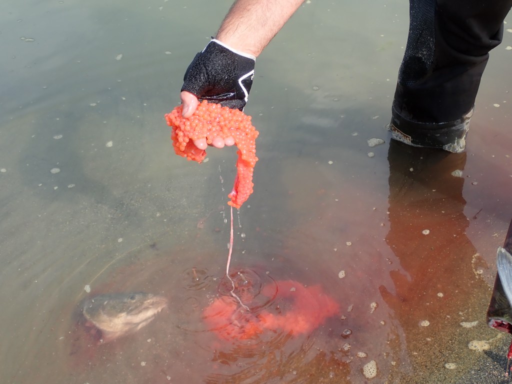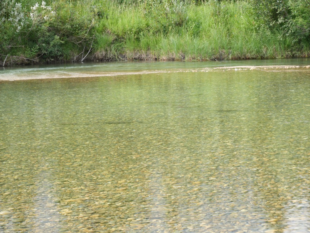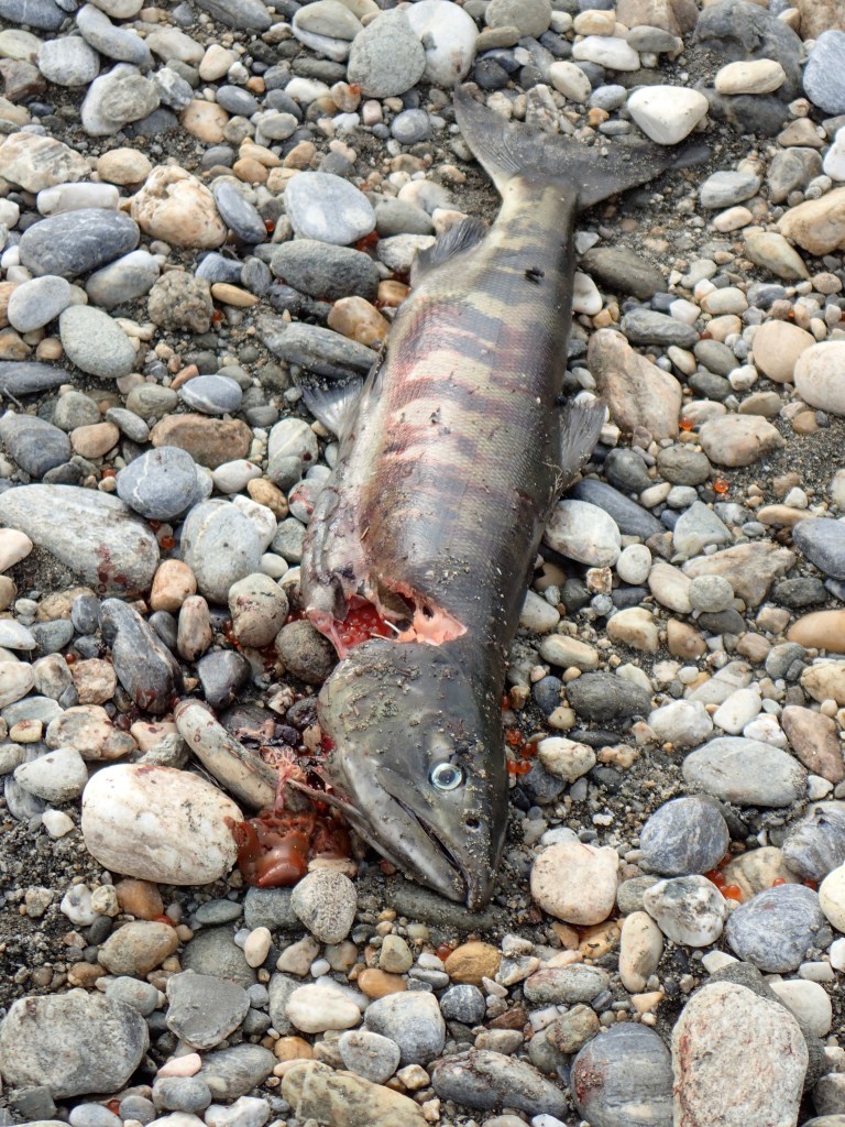 Fishing is successfull however – the first salmons. We can see them in the crystal clear water coming from the little creek.