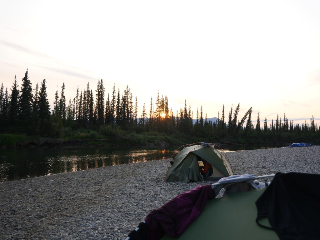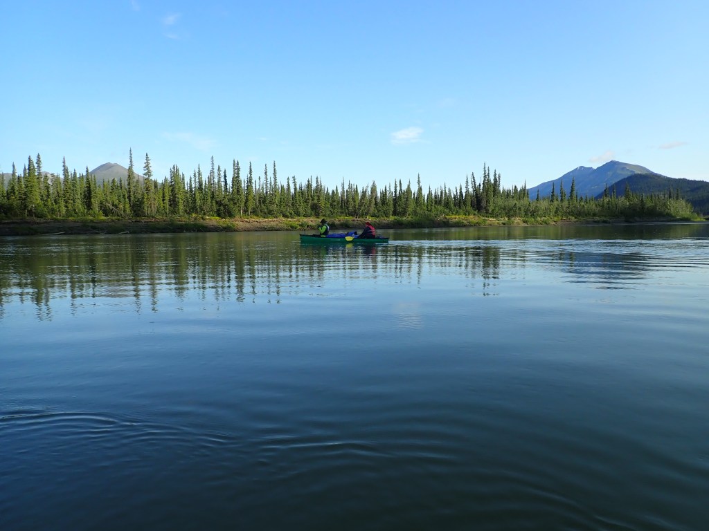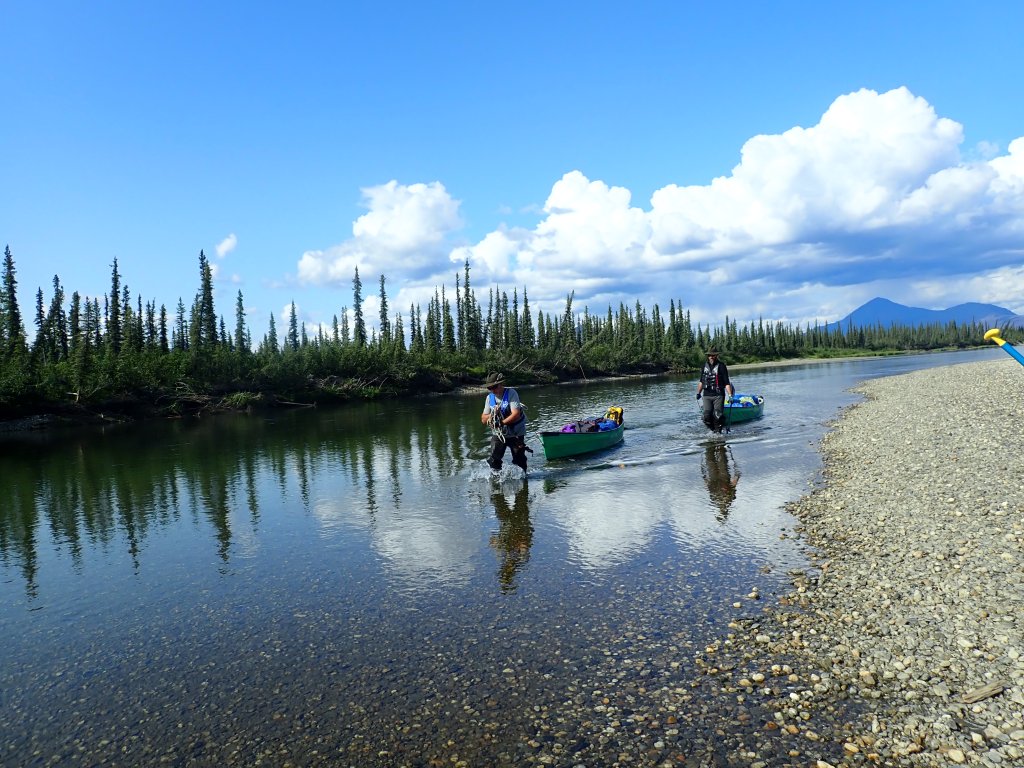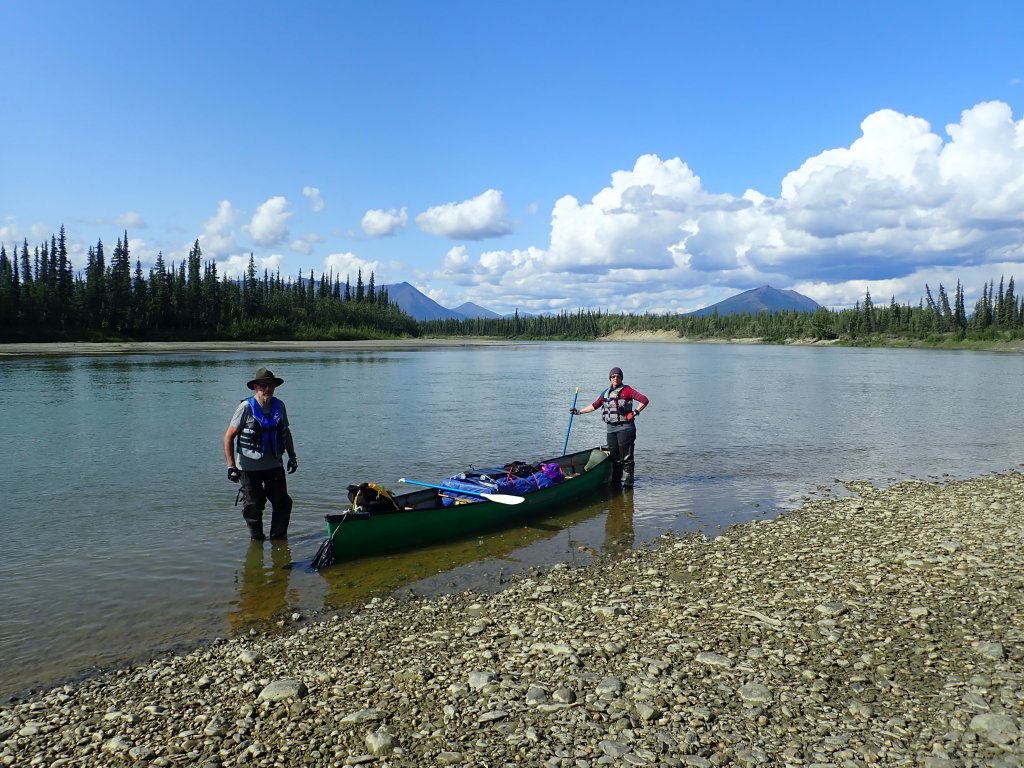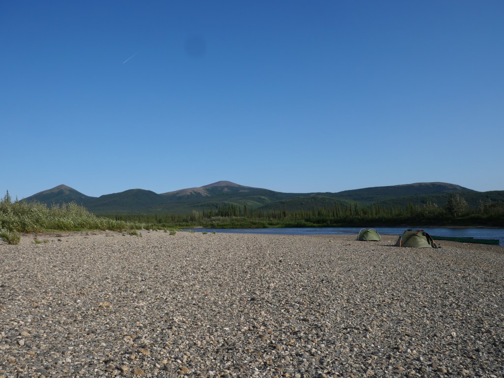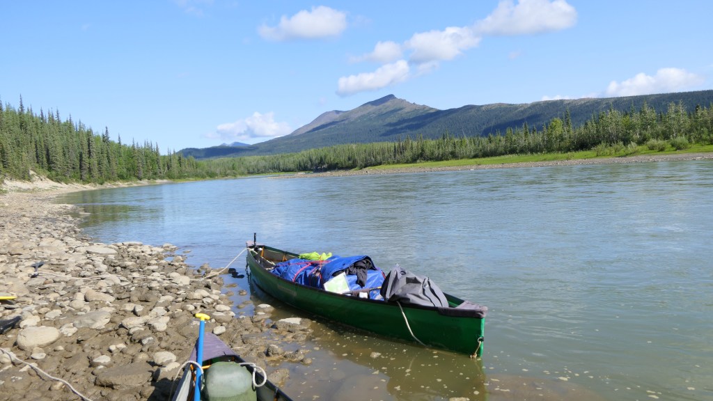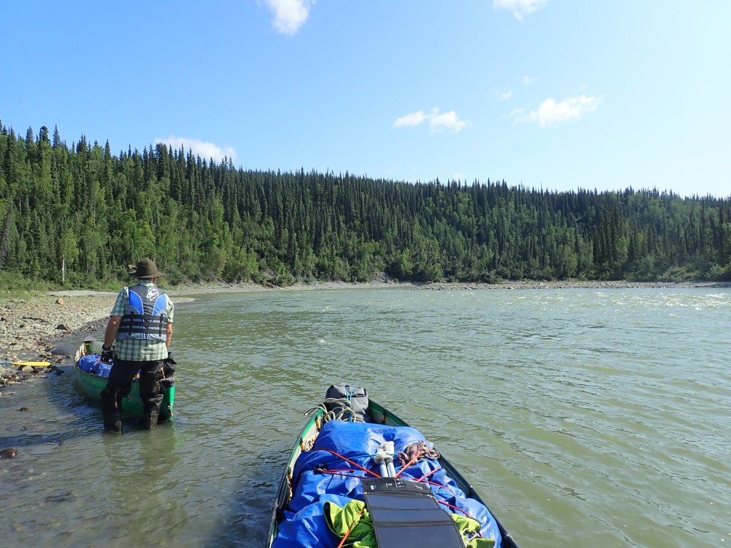 When we reach the confluence with Malamute Fork we decide to take our canoes up the river as according to Peter’s maps there should be some nice camps there and what’s more the river is crystal clear.