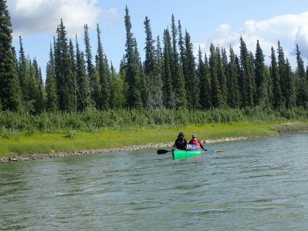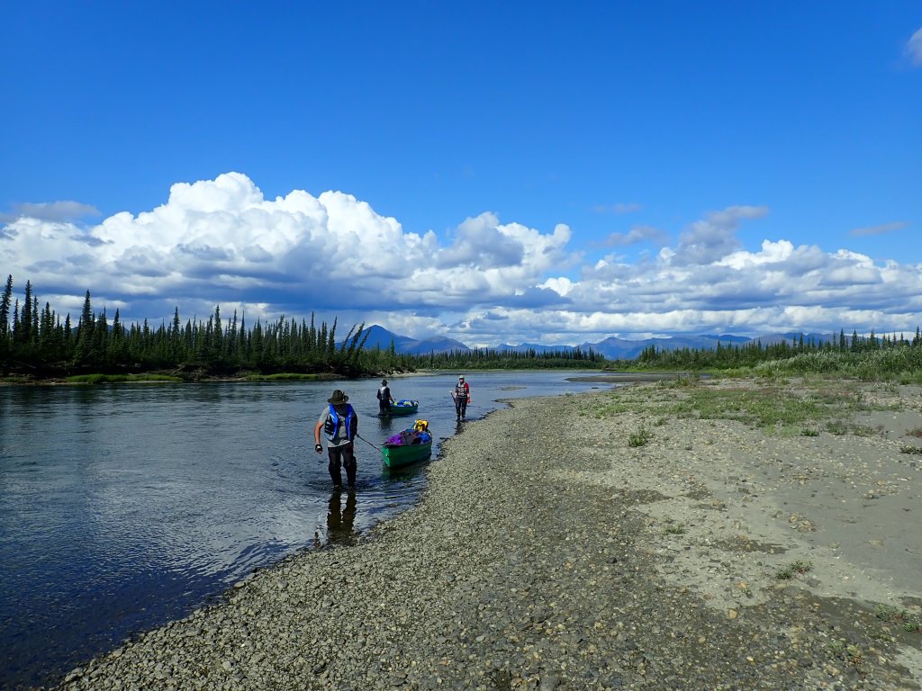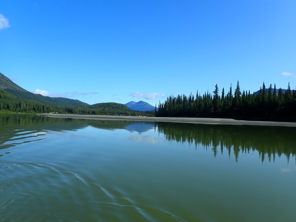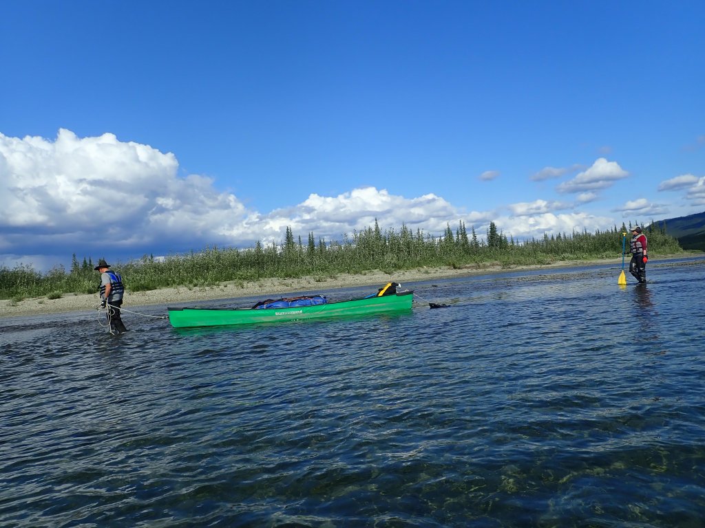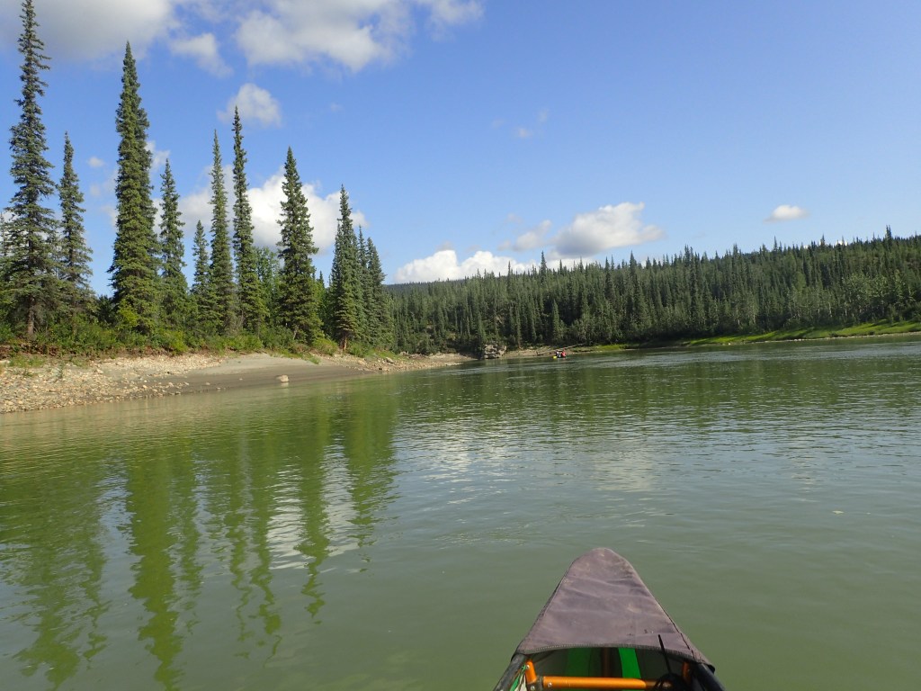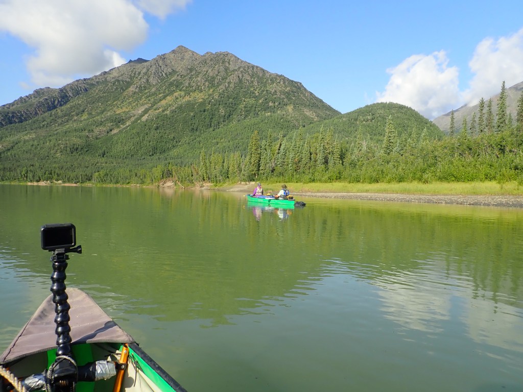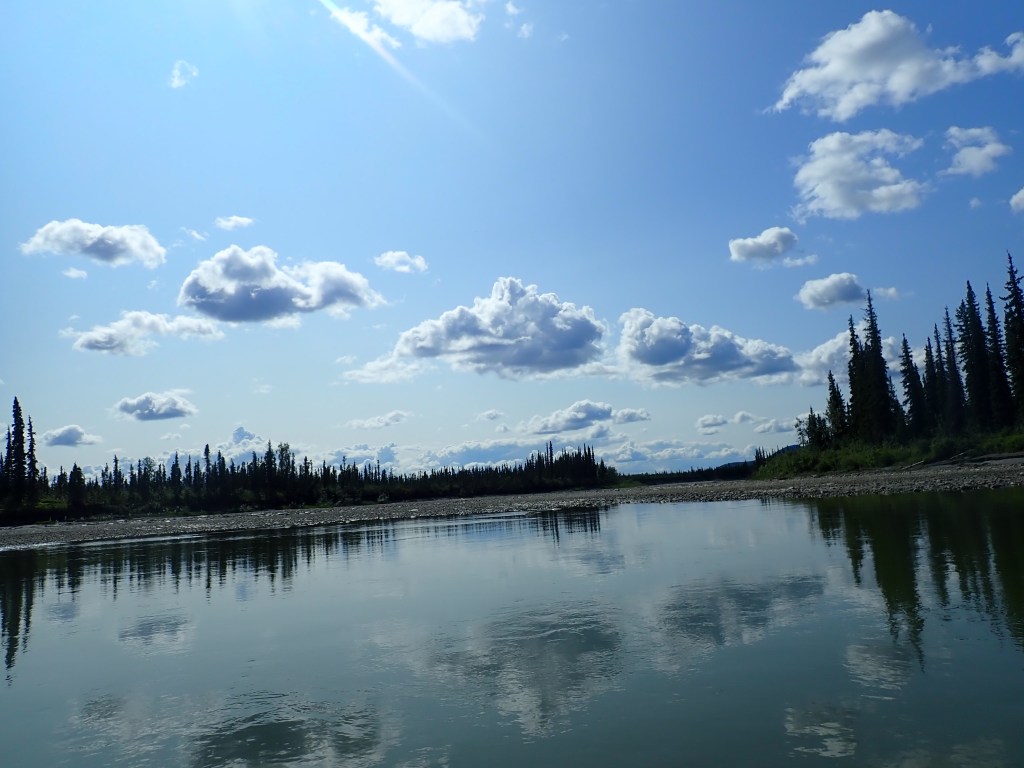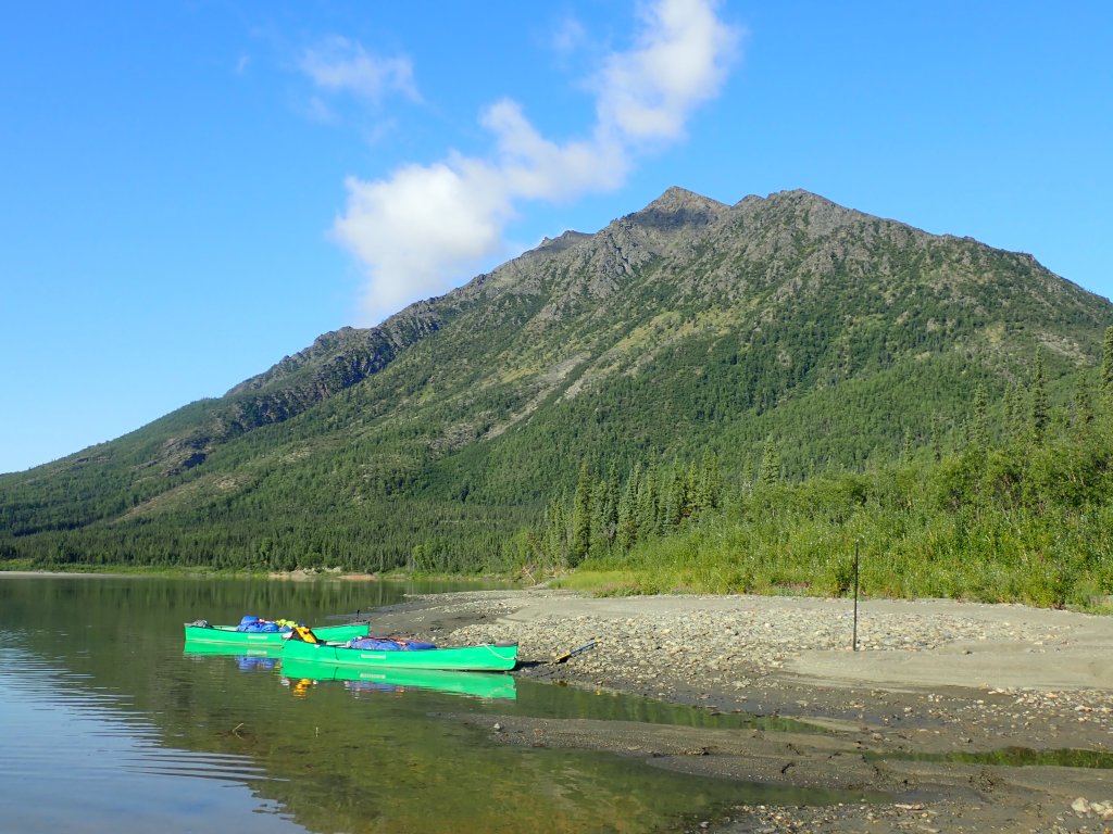 When we reach the confluence with Malamute Fork we decide to take our canoes up the river as according to Peter’s maps there should be some nice camps there and what’s more the river is crystal clear.