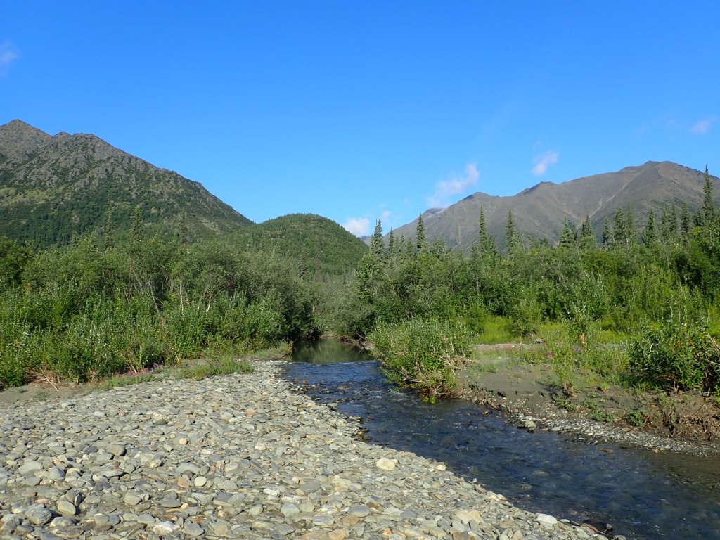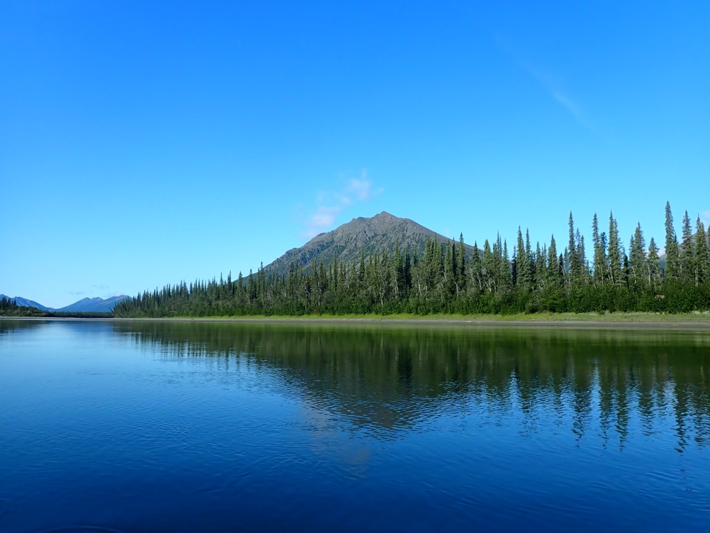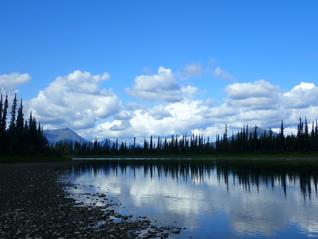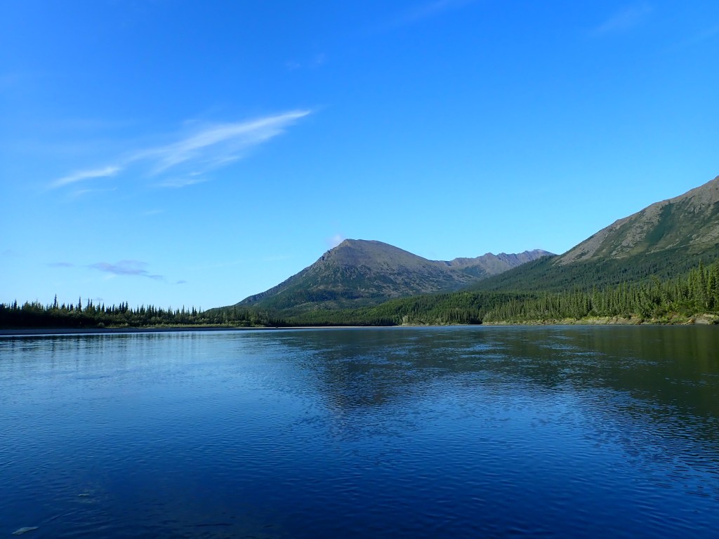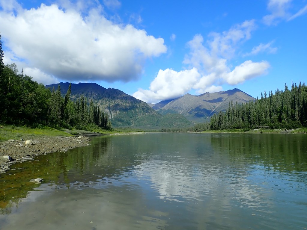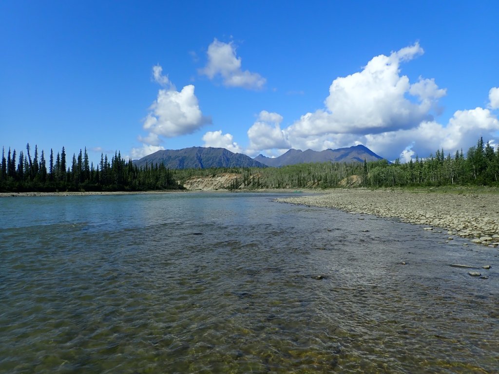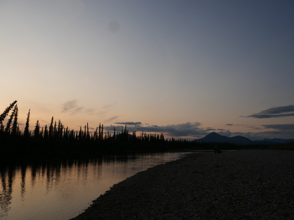 When we reach the confluence with Malamute Fork we decide to take our canoes up the river as according to Peter’s maps there should be some nice camps there and what’s more the river is crystal clear.
