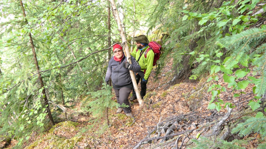 The hike is quite steep and we have to pay attention. Of course, we are shouting “Hey Bear” from time to time. You do not want to meet a bear here.