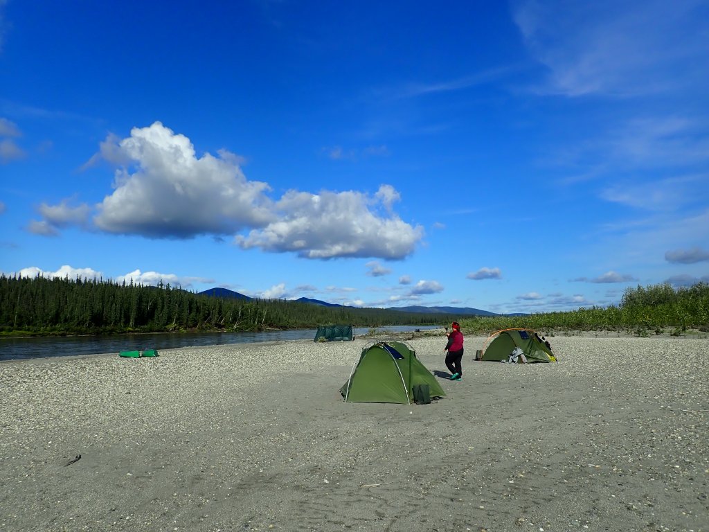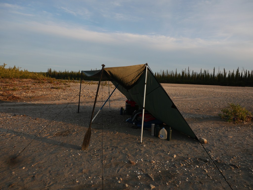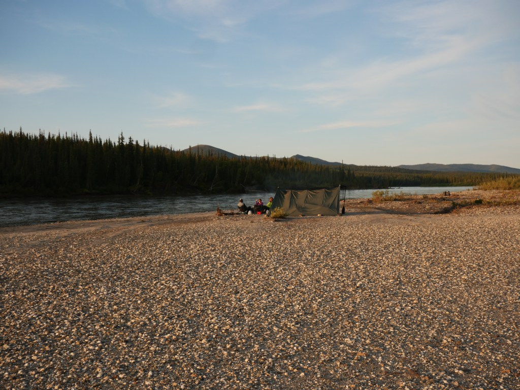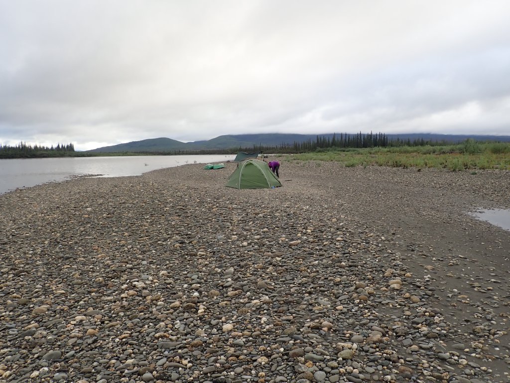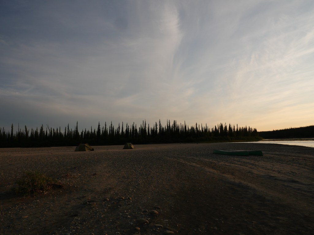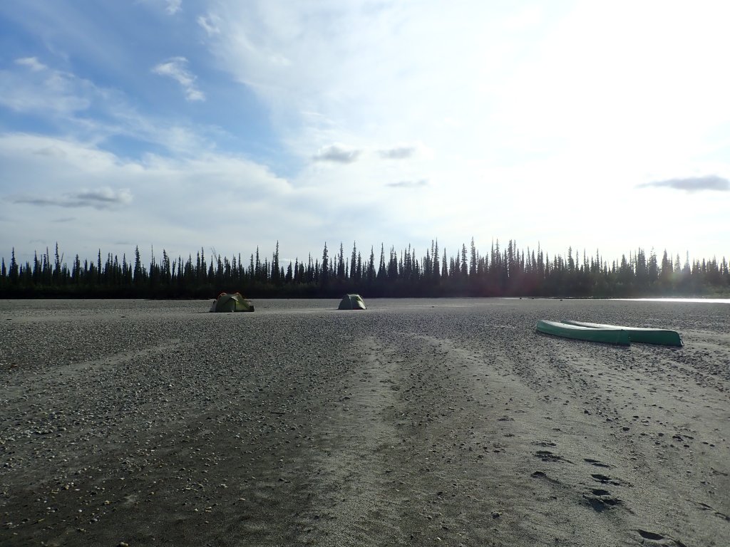 We find a great camp this evening on an island with a wide sand/gravel bank.