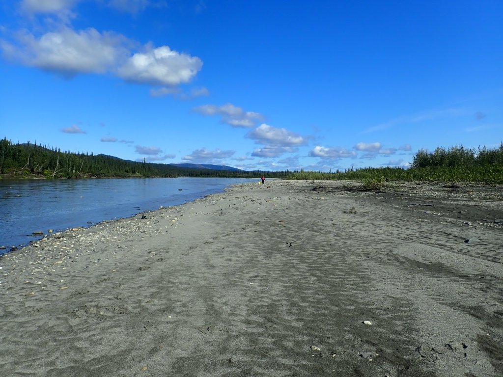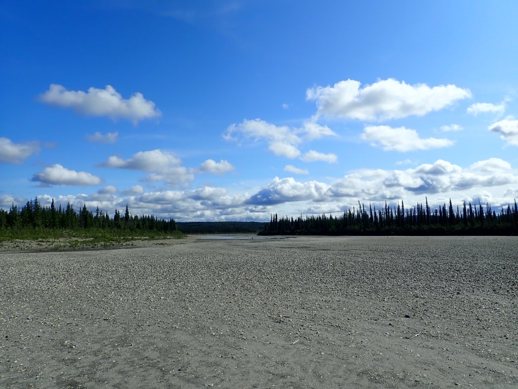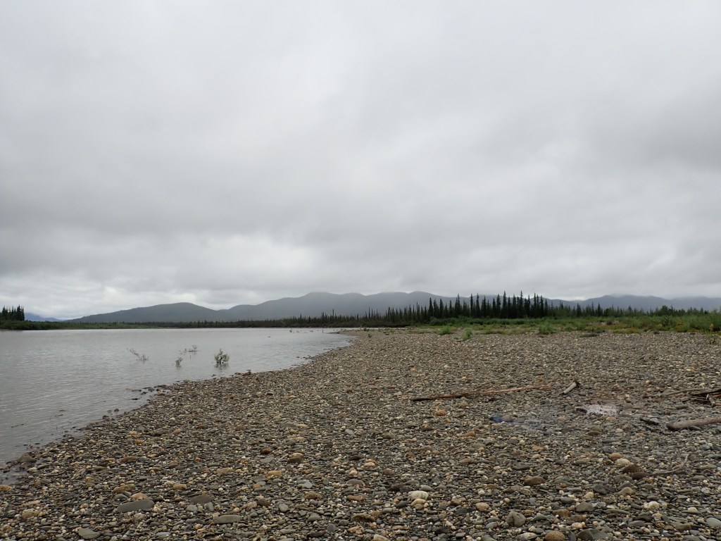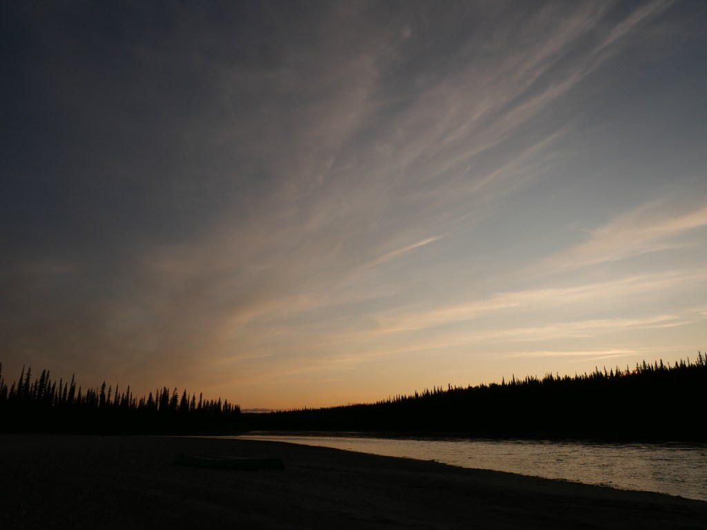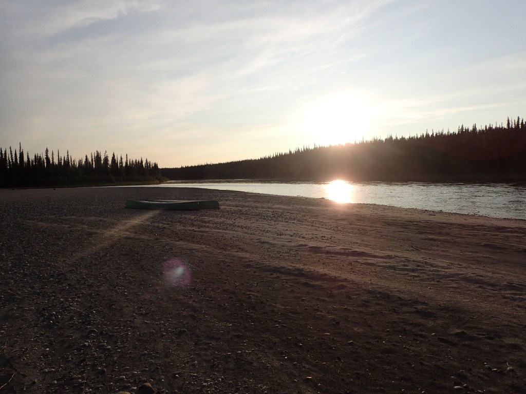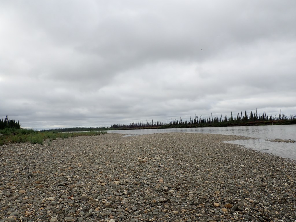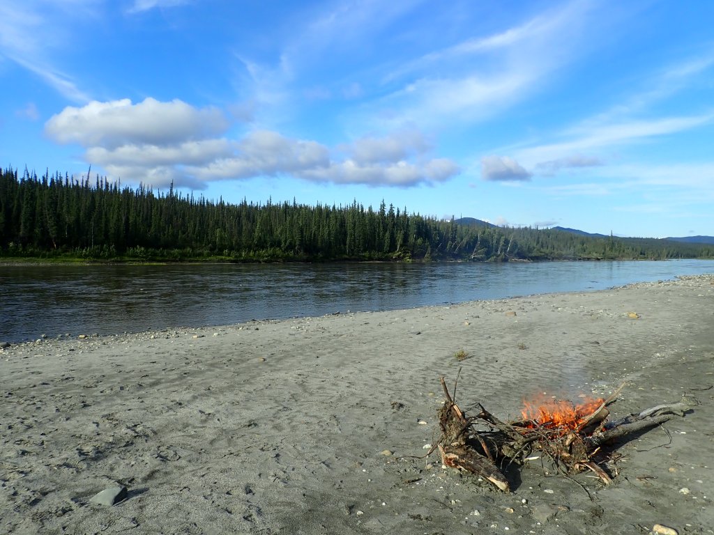 We find a great camp this evening on an island with a wide sand/gravel bank.
