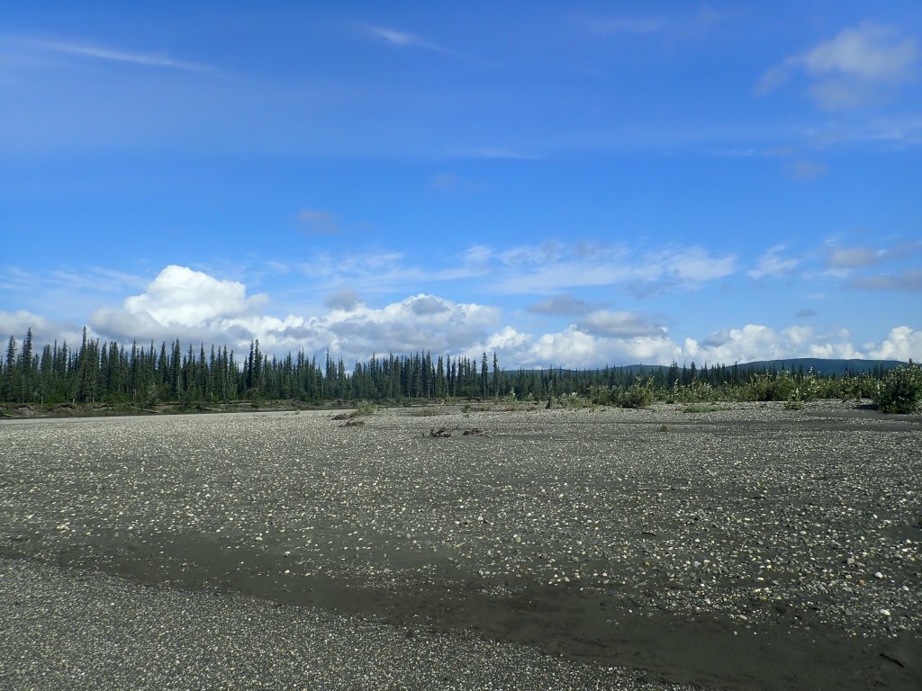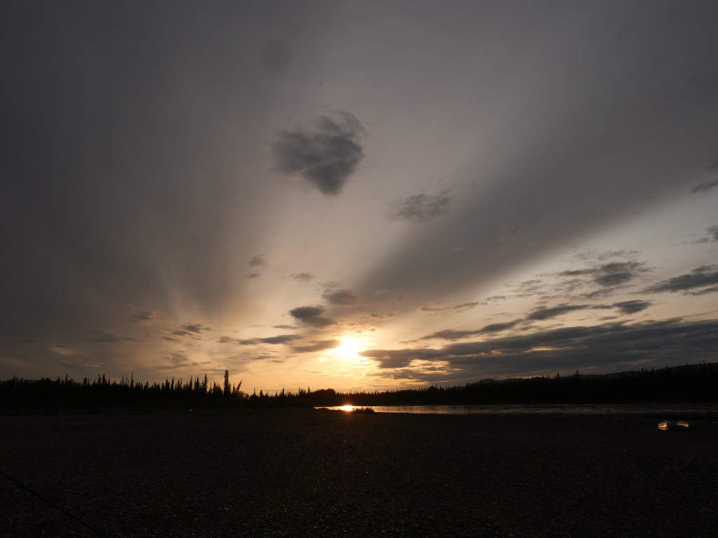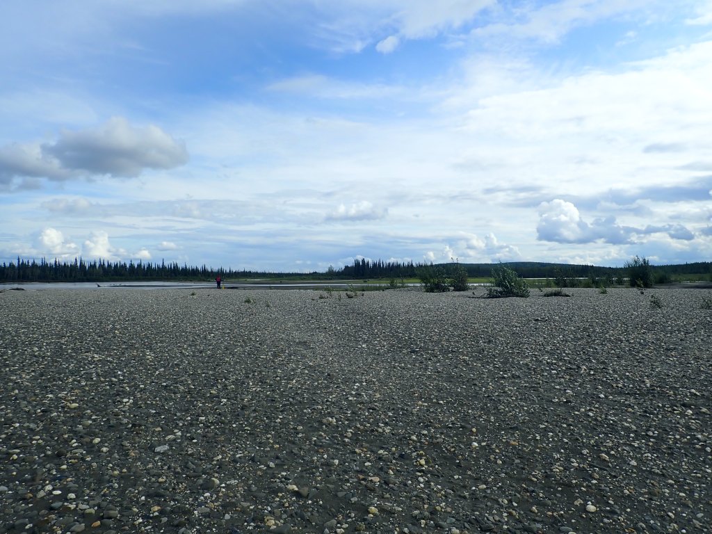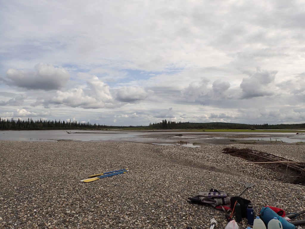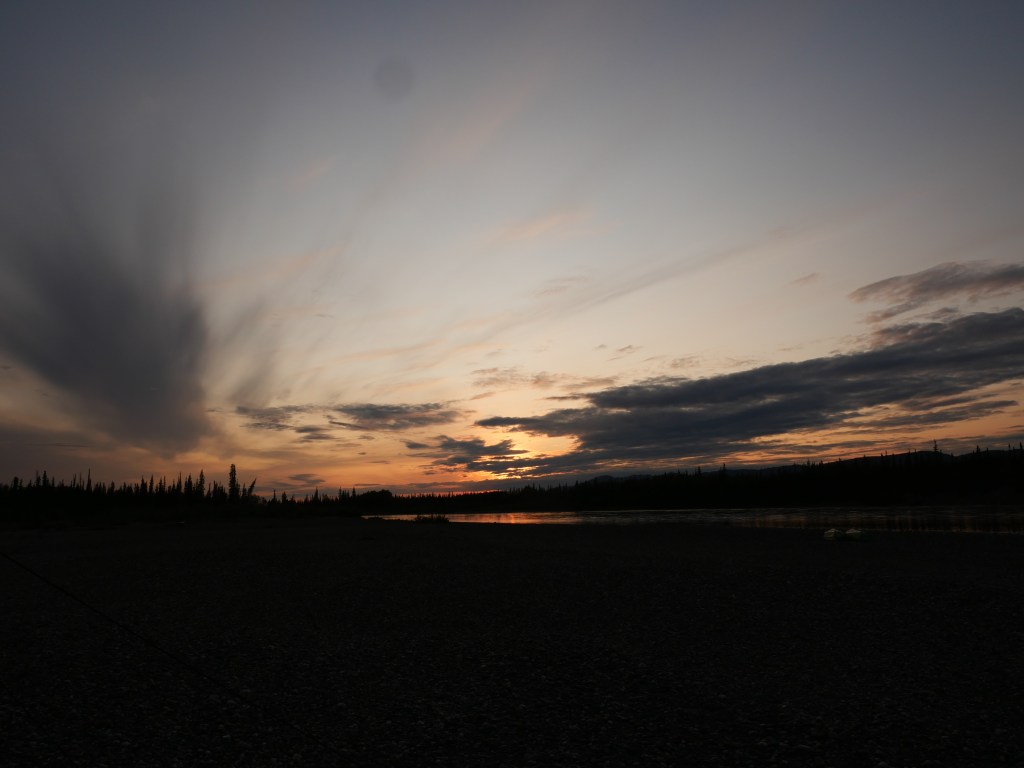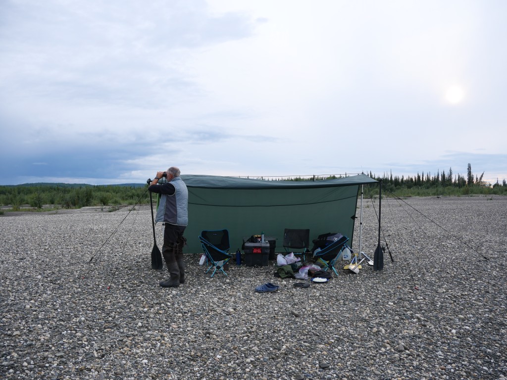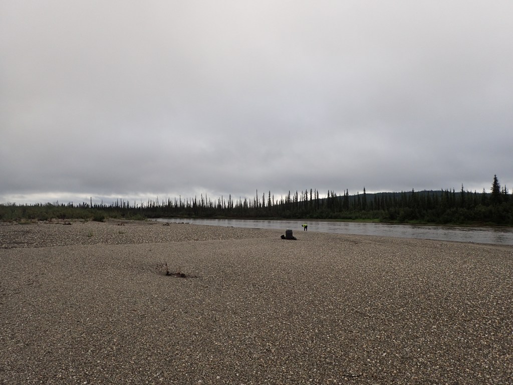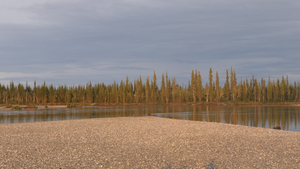 At one point according to the map the river should turn right but has once again decided to go straight. That’s where we find one of our most beautiful camps. A nice and high and big gravel bank.