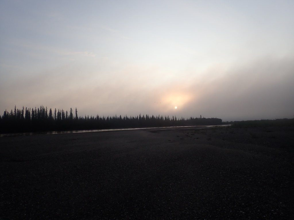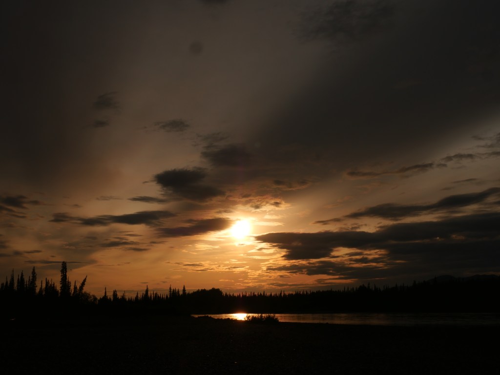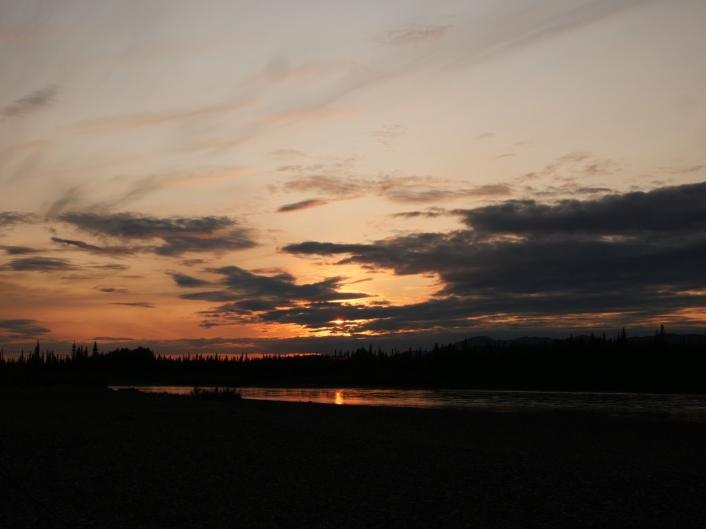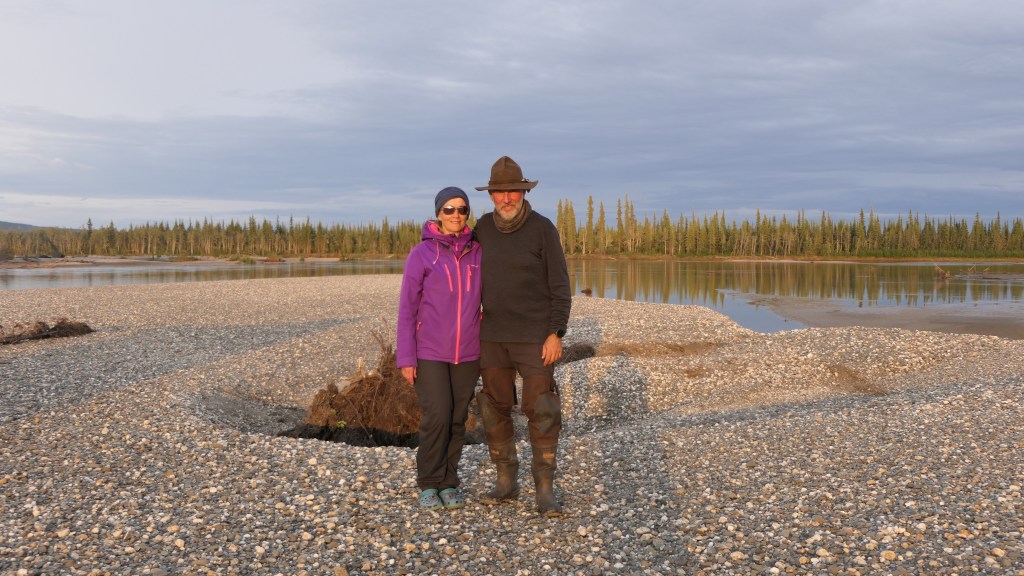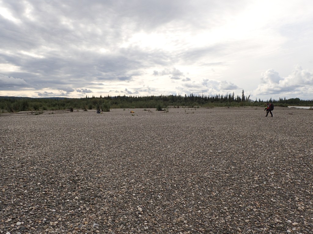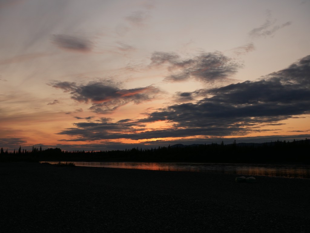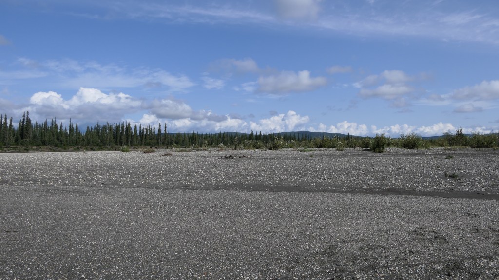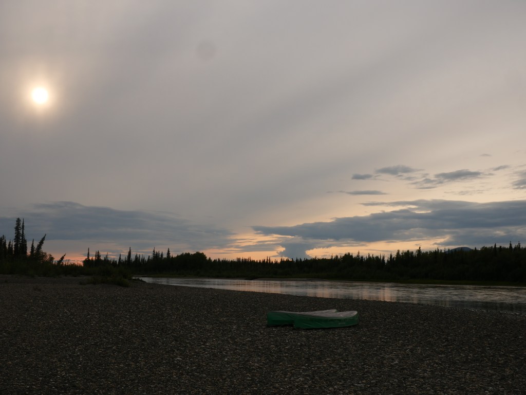 At one point according to the map the river should turn right but has once again decided to go straight. That’s where we find one of our most beautiful camps. A nice and high and big gravel bank.
