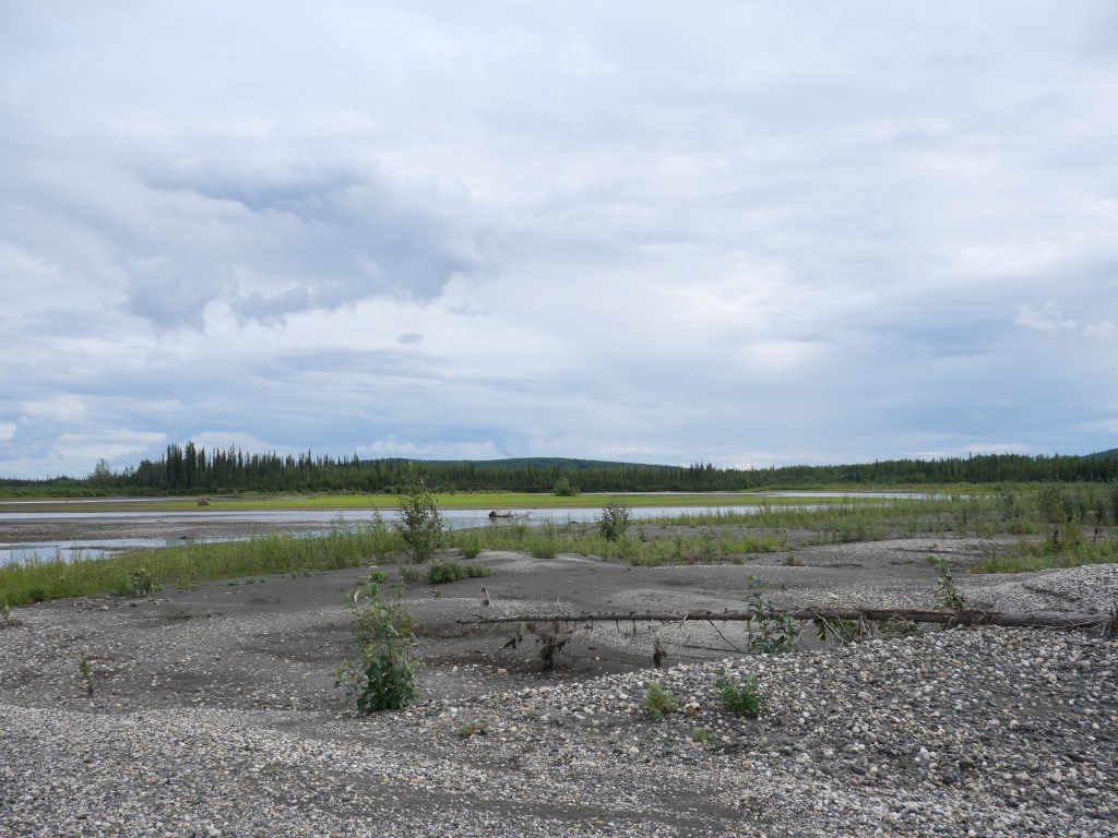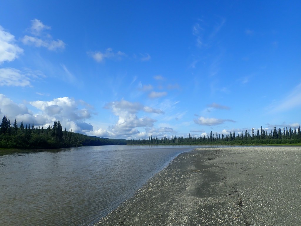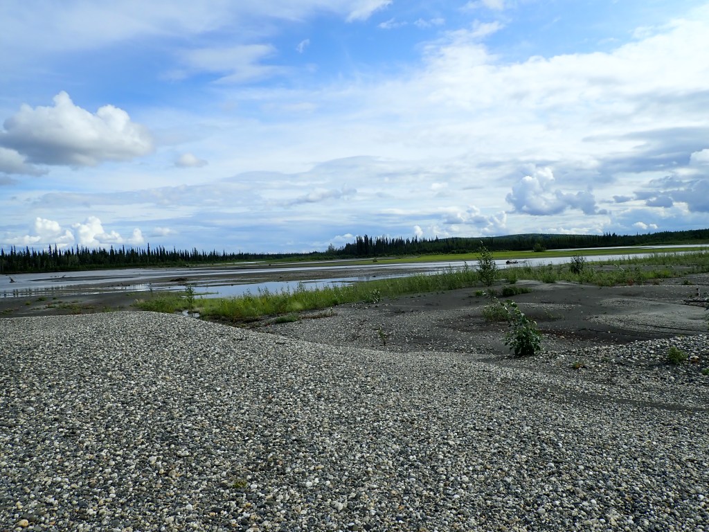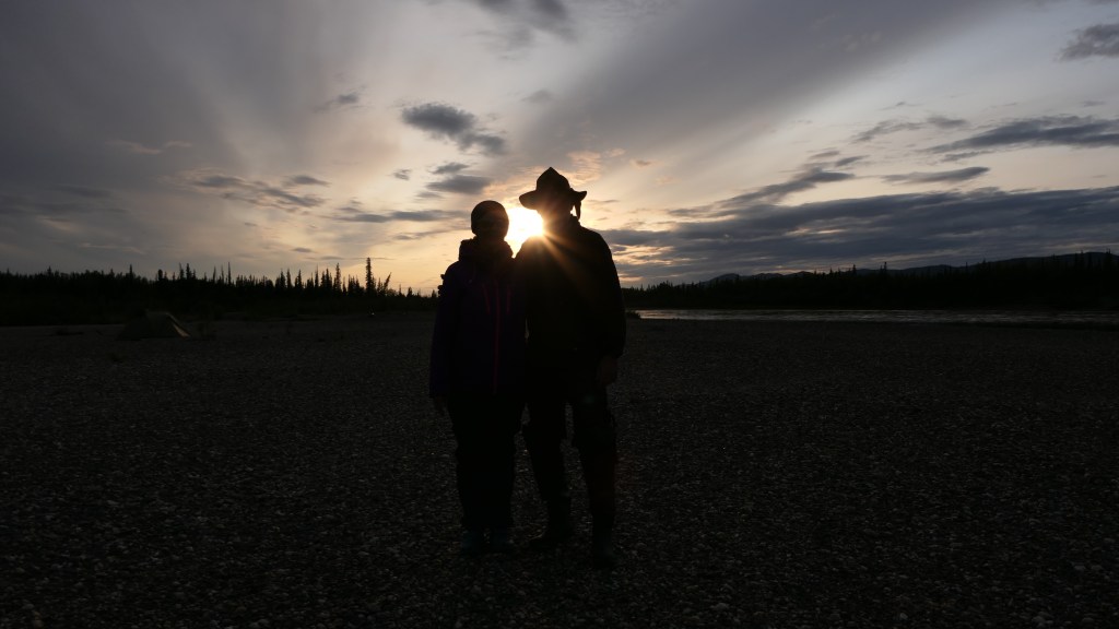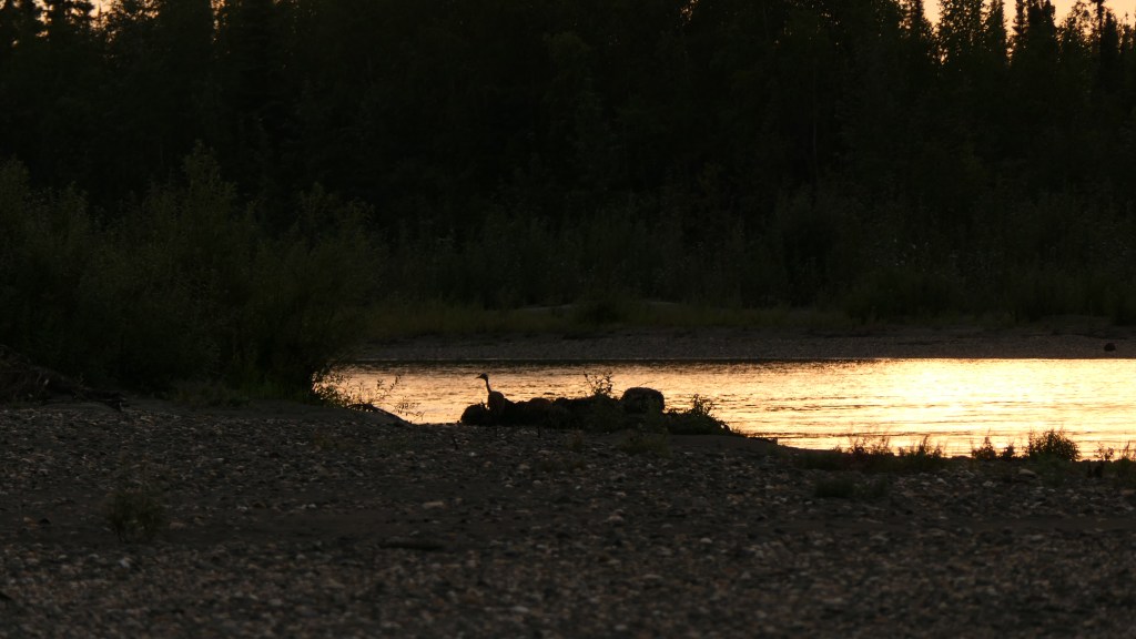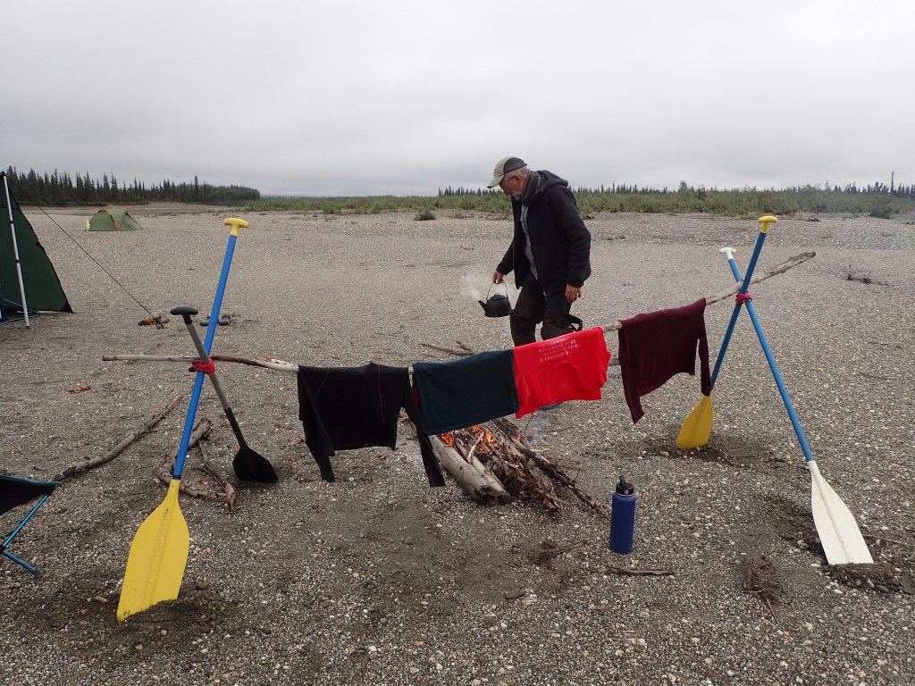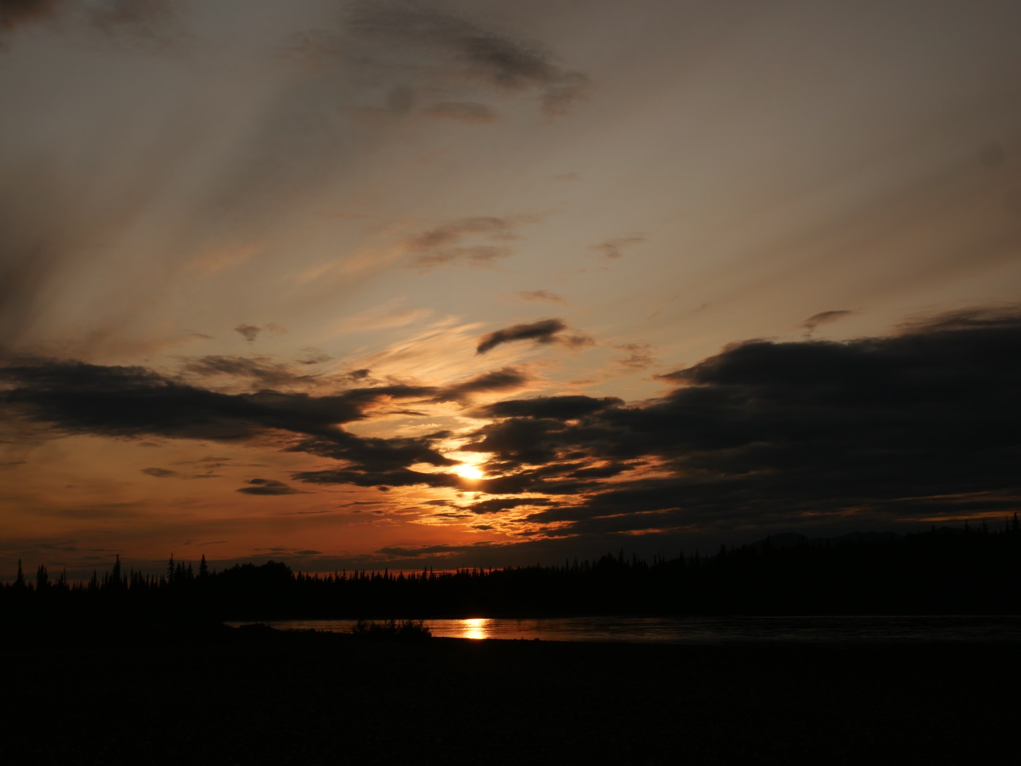 At one point according to the map the river should turn right but has once again decided to go straight. That’s where we find one of our most beautiful camps. A nice and high and big gravel bank.