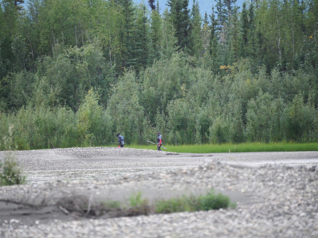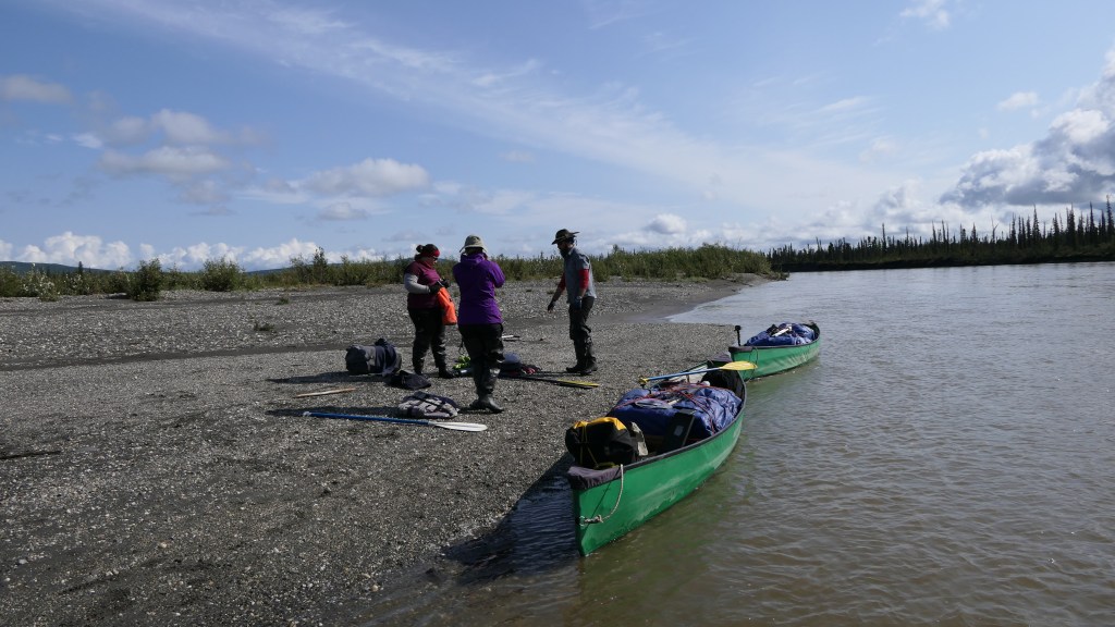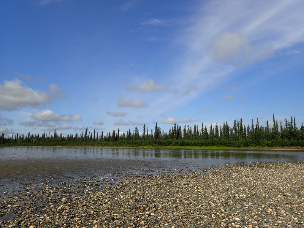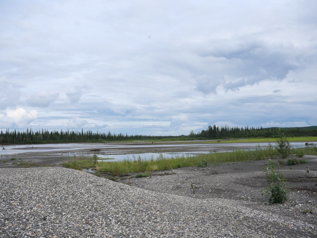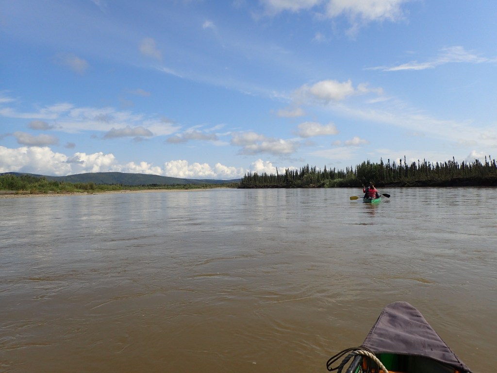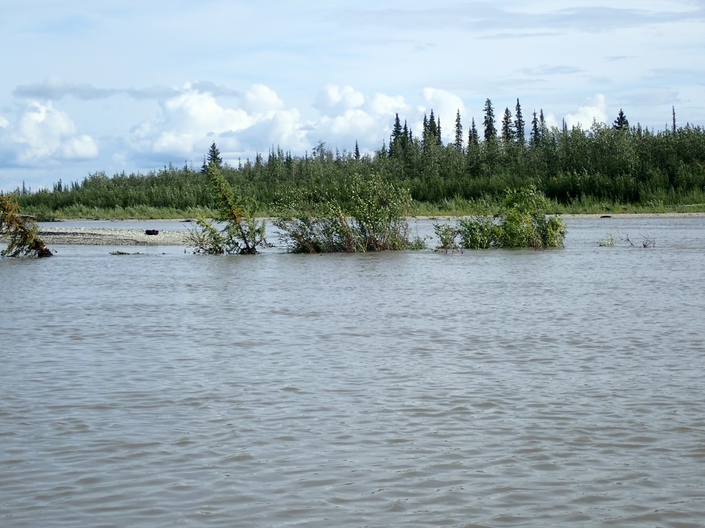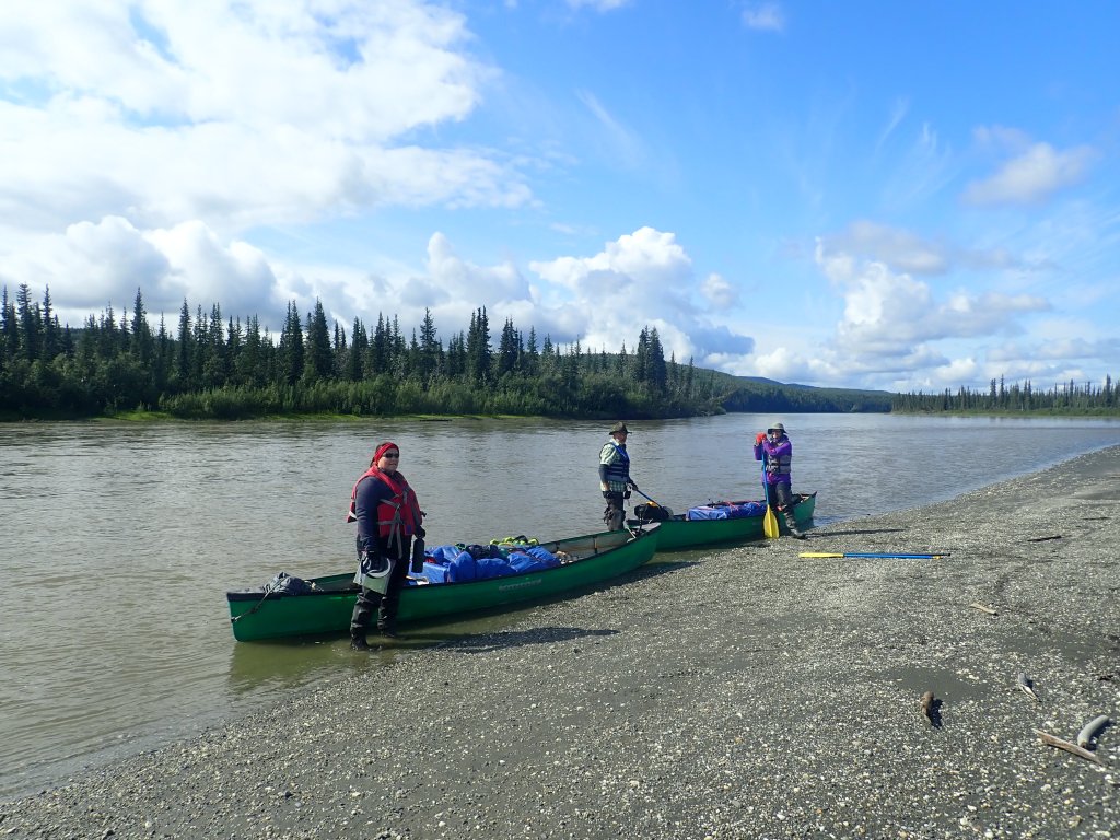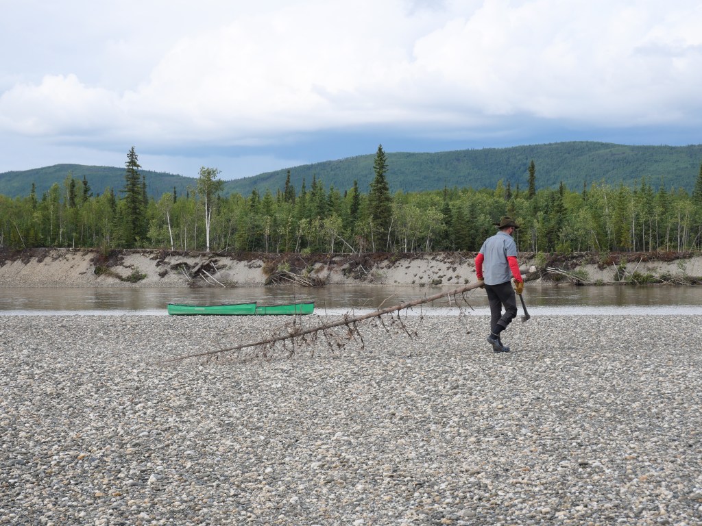 At one point according to the map the river should turn right but has once again decided to go straight. That’s where we find one of our most beautiful camps. A nice and high and big gravel bank.