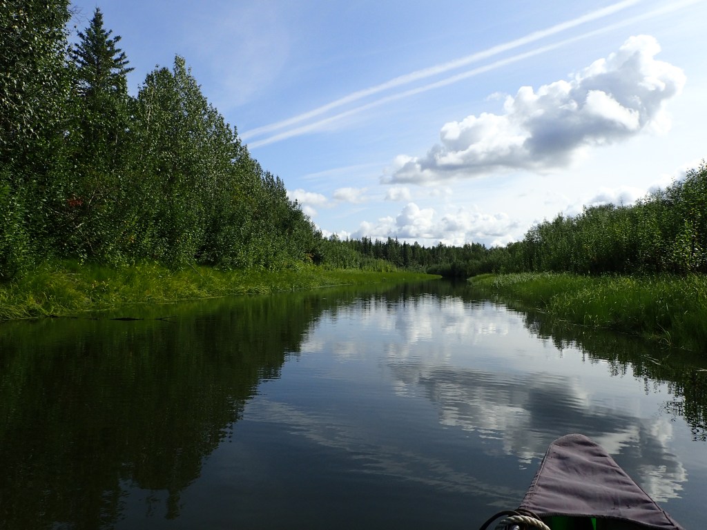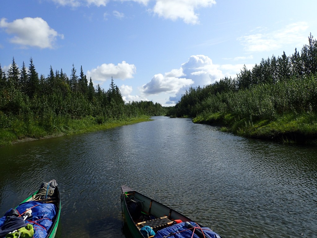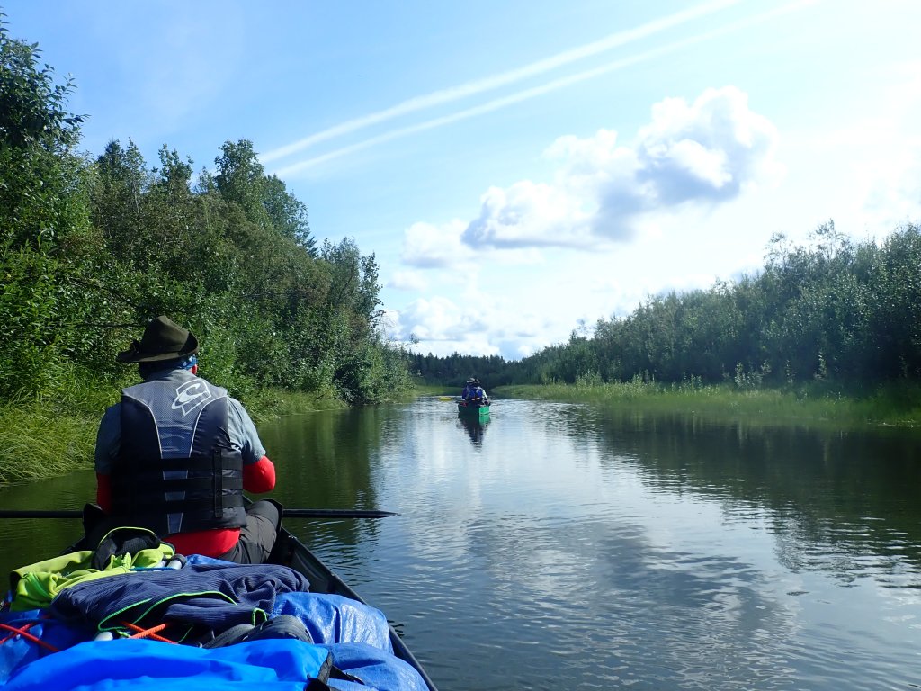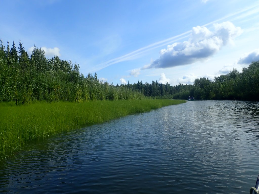 No luck here though and we get back on the main channel, where the water is still a lot higher than at the beginning of our trip.