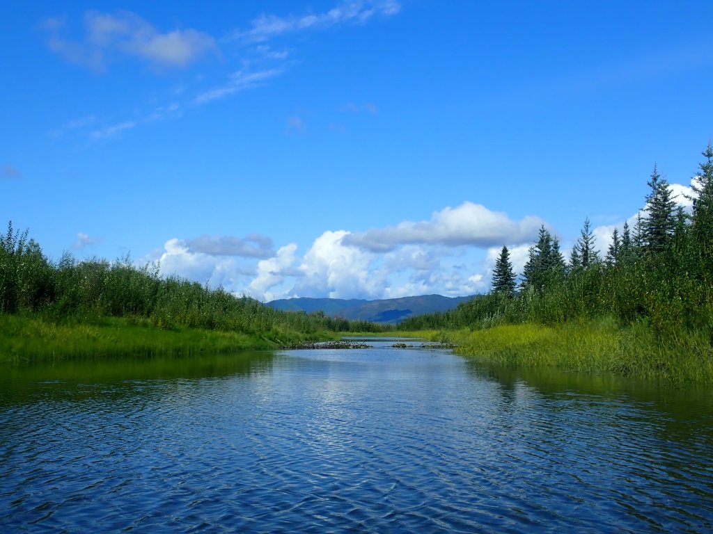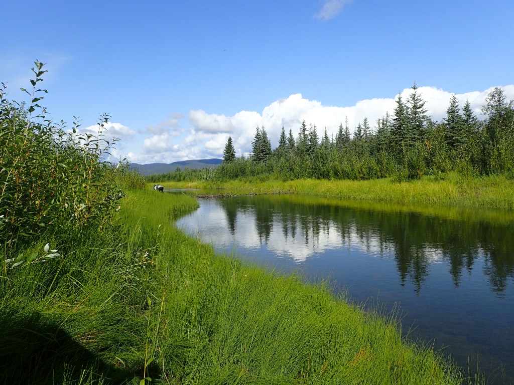 The channel on the right below is blocked by a beaver dam – no going further without portage there. The blues and greens are breathtaking.