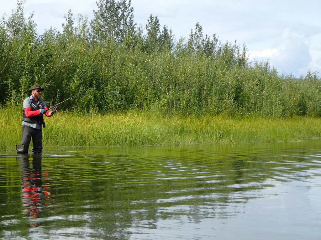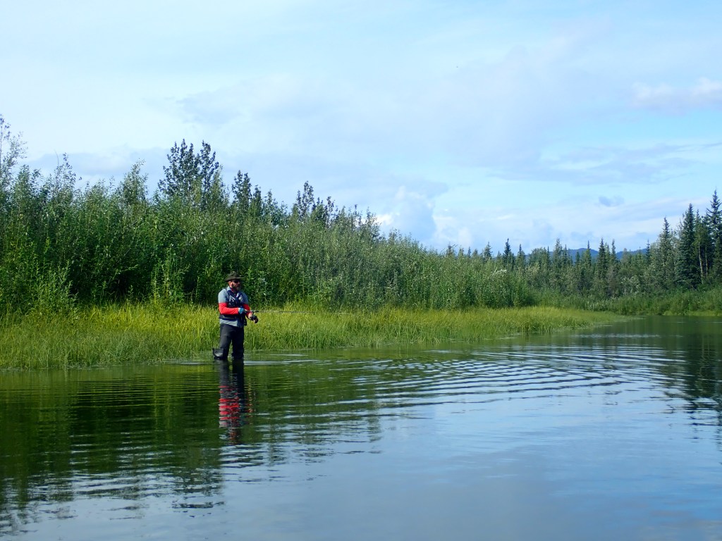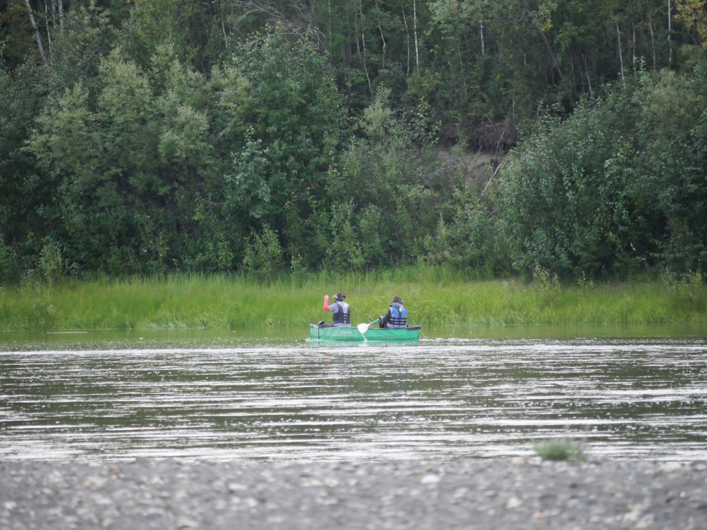 When the arm further separates into two branches we stop. We decide to filter water and fill our stocks. Of course dad tries to fish (especially as we have seen some arctic pikes when going “upriver”).