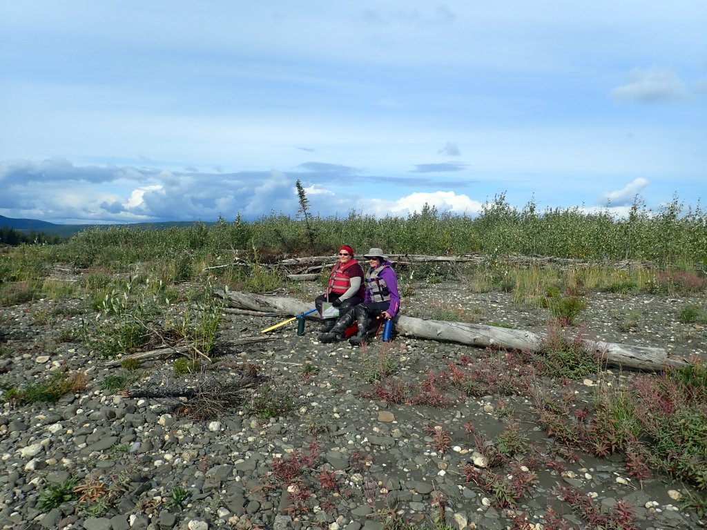 In this part the river should be meandering a lot according to the map. It seems however that more than once the river has chosen to go straight and leave his bed. We have lunch high up on a bank in the sun.