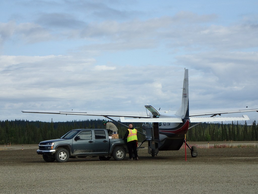 Even earlier than that a plane is landing. It’s the food plane the village was waiting for – not ours and he’s not directly going back to Fairbanks so he can not take us.